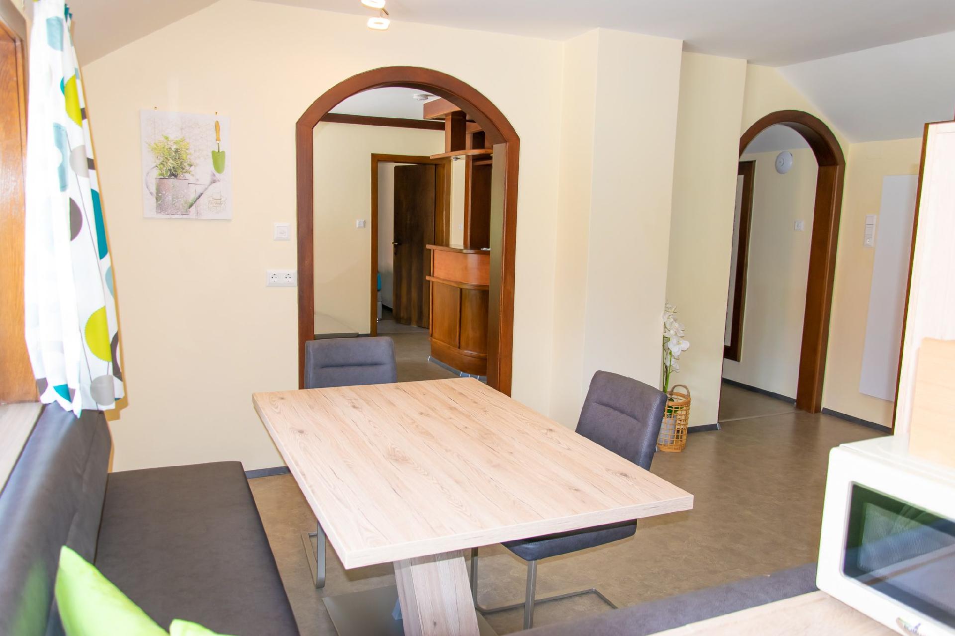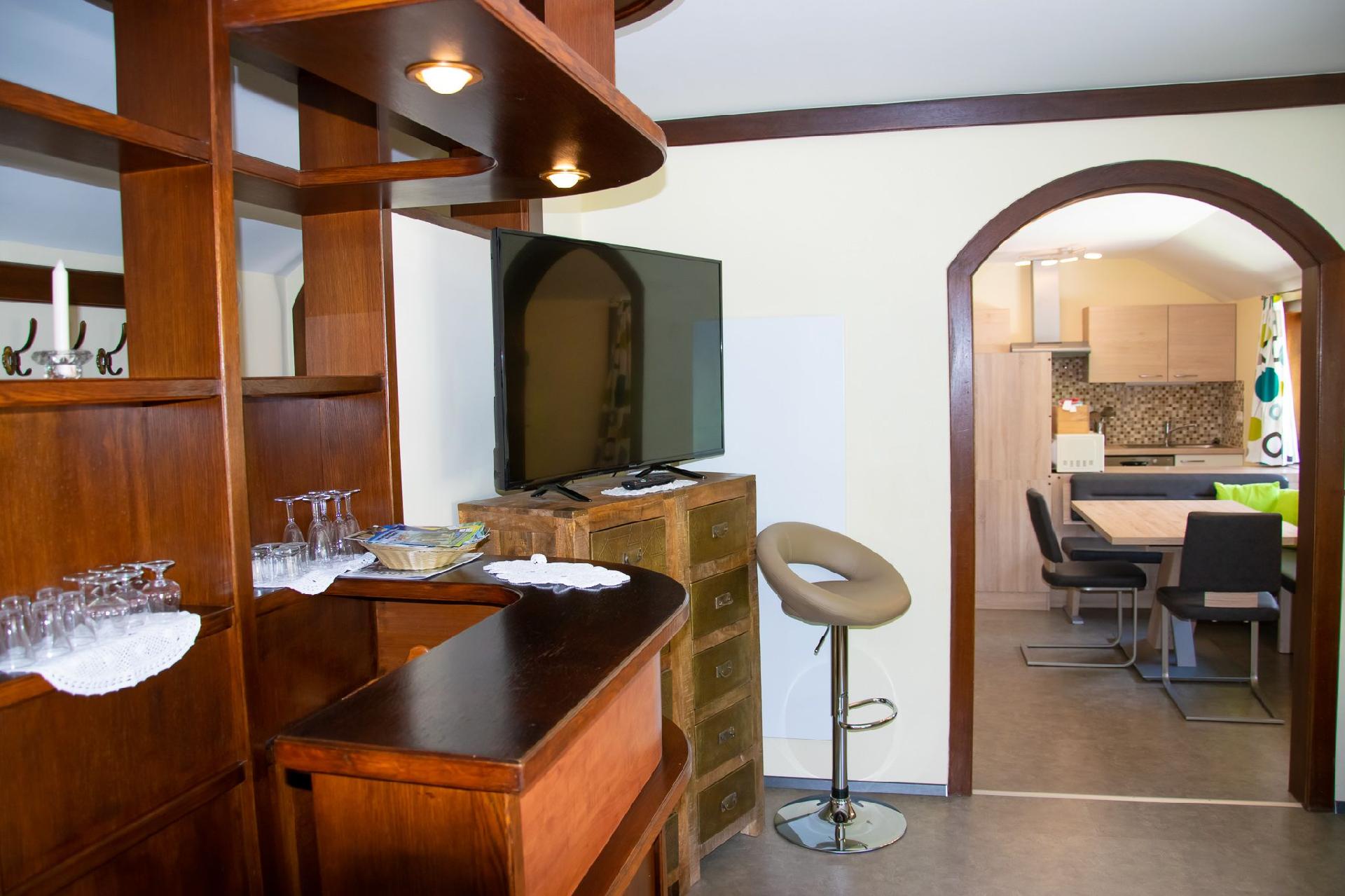 Die Wohnung selbst befindet sich im ersten Stock und glänzt mit einer Aufteilung, die sowohl funktional als auch gemütlich ist. Zwei Doppelschlafzimmer bieten komfortablen Schlafplatz für alle Gäste. Neben einer voll ausgestatteten Küche, die mit Elektroherd, Geschirrspüler, Backofen, Mikrowelle, Kühl- und Gefrierschrank ausgestattet ist, bietet der Wohnbereich einen angenehmen Raum zum Entspannen. Die Bereitstellung aller nötigen Küchenutensilien, Besteck und Gläser erleichtert die Selbstversorger-Option erheblich. Außerdem ist für Unterhaltung gesorgt, mit drei Flachbildfernsehern, die zur Verfügung stehen.