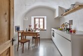 Ofen / Cheminée: Tiba Herd in der Küche. Beim Einfeuern die Türe so lange offen lassen, bis das Feuer gut entfacht ist. Nach dem Feuern die Klappen schliessen.