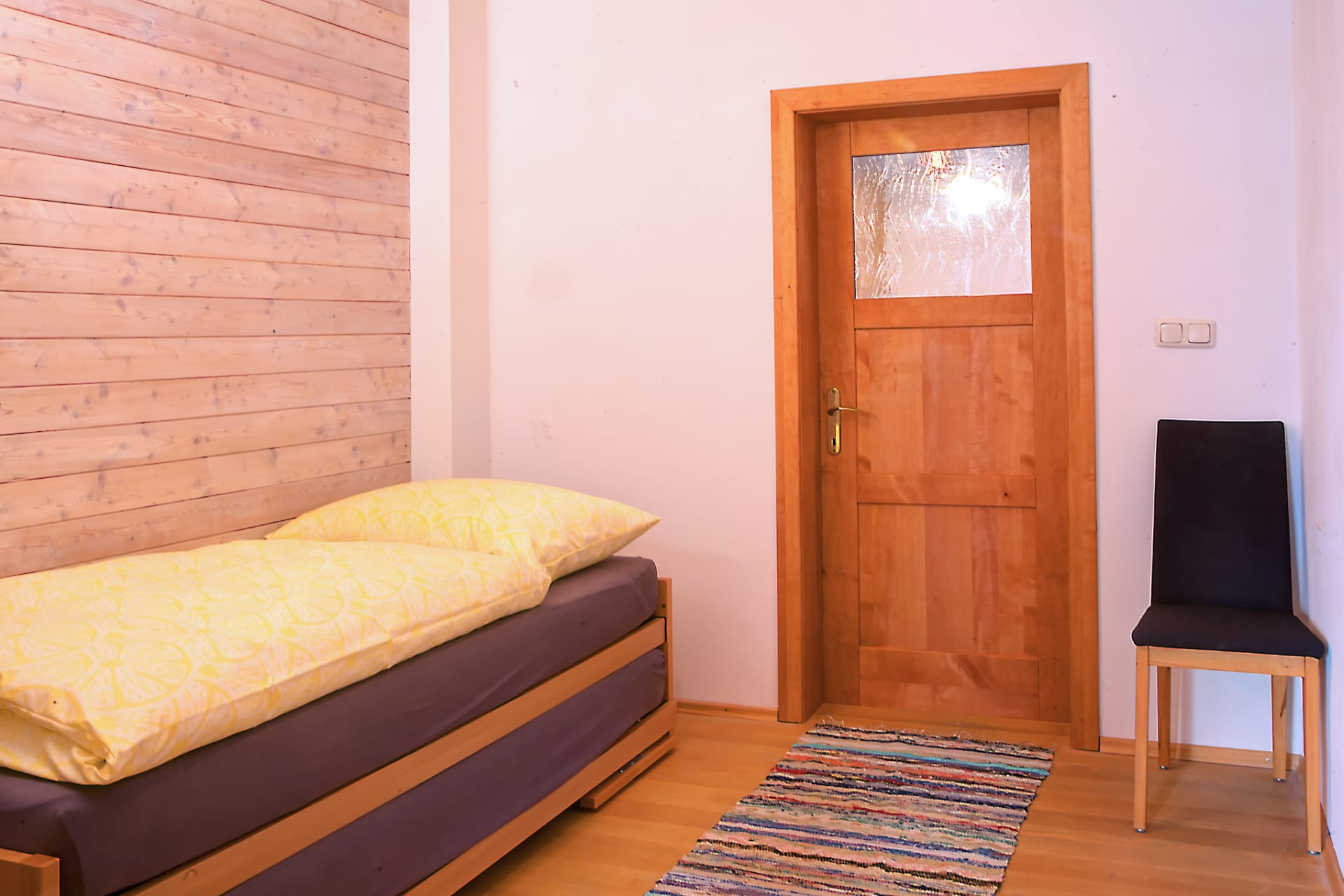 Die Wohnung ist einfach und edel renoviert, mit Lärchenholz und Lehmputz. Sie liegt in einem eigenen Trakt des Hofes und ist ideal geeignet für zwei Personen mit bis zu zwei Kindern.
