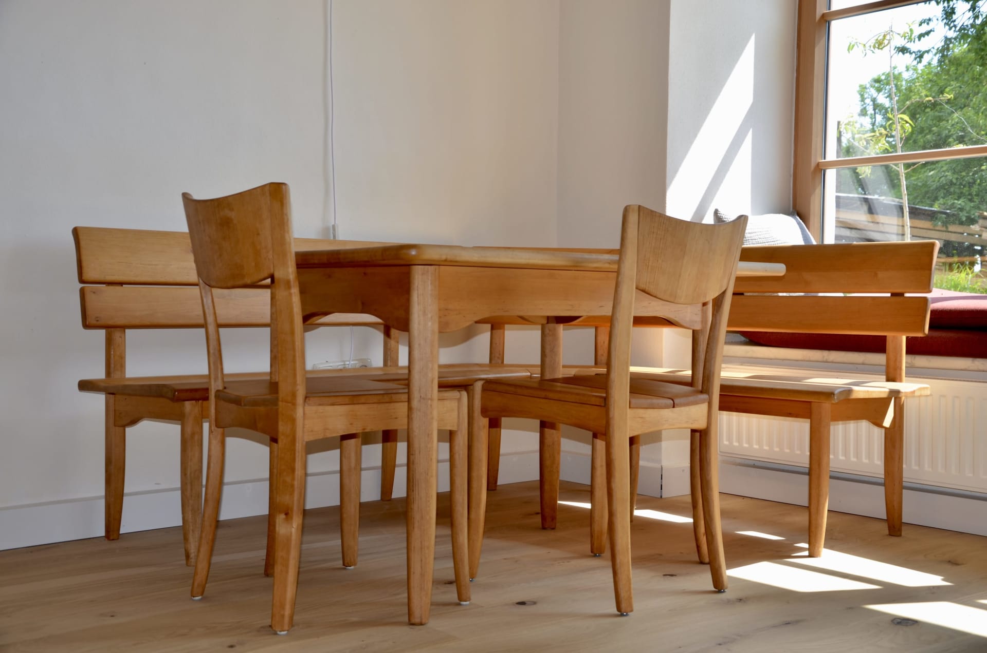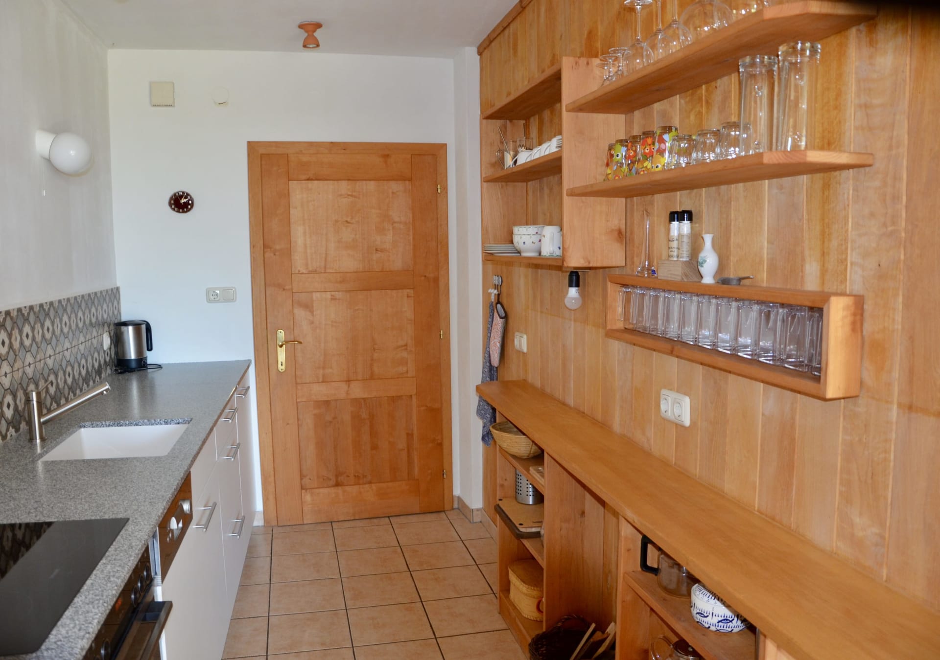 • Die Küche ist sehr gut ausgestattet mit E-Herd, Geschirrspüler, Wasserkocher, Mixer, Kaffeemaschine, Flockenquetsche und allerlei Töpfen und Pfannen zum Selberkochen. Gewürze, Getreidekörner fürs Müsli und selbst gepflückter Kräutertee warten auf unsere Gäste.