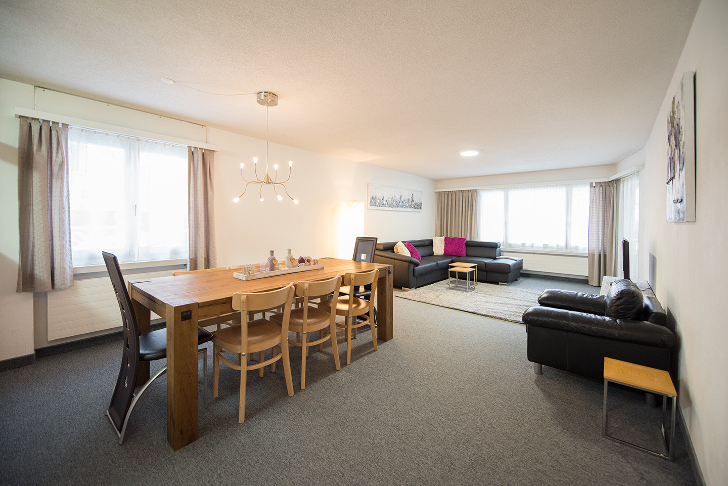 Wohnraum mit Polstergruppe, Essecke, TV, W-LAN.