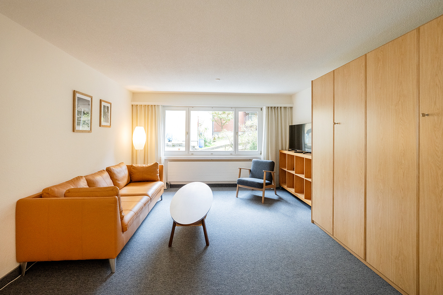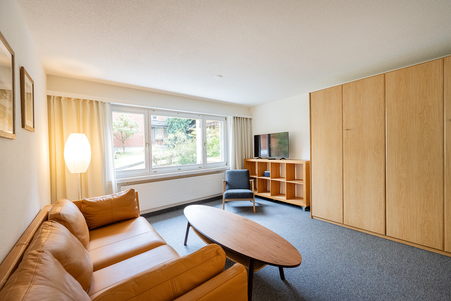 Wohnraum mit Polstergruppe, Essecke, 2 Klappbetten, TV, W-LAN.