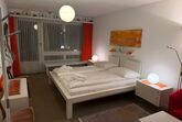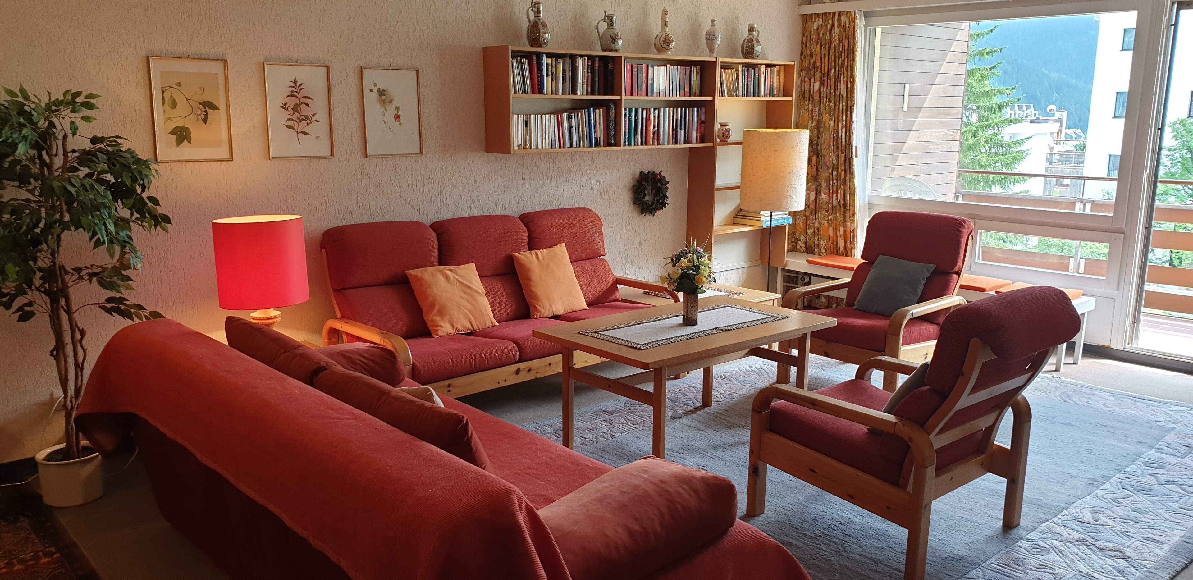 Wohnraum mit Polstergruppe, Sofabett (2 Personen), separate Essecke, Flachbild-TV, Wlan.