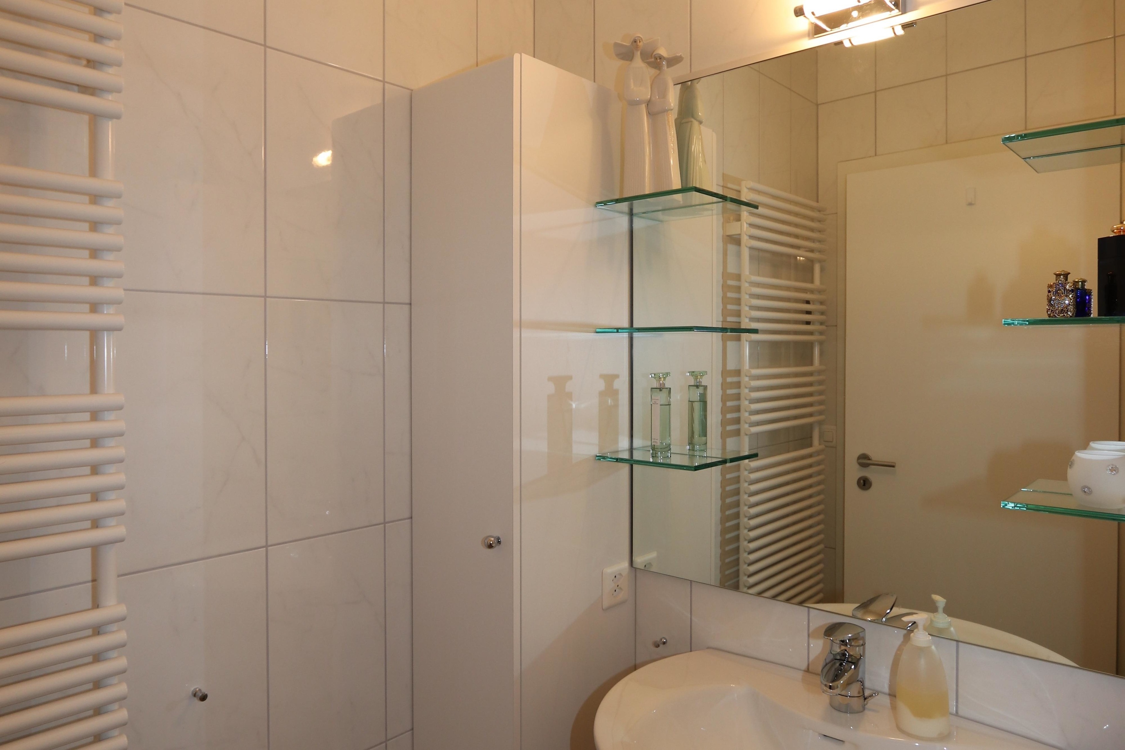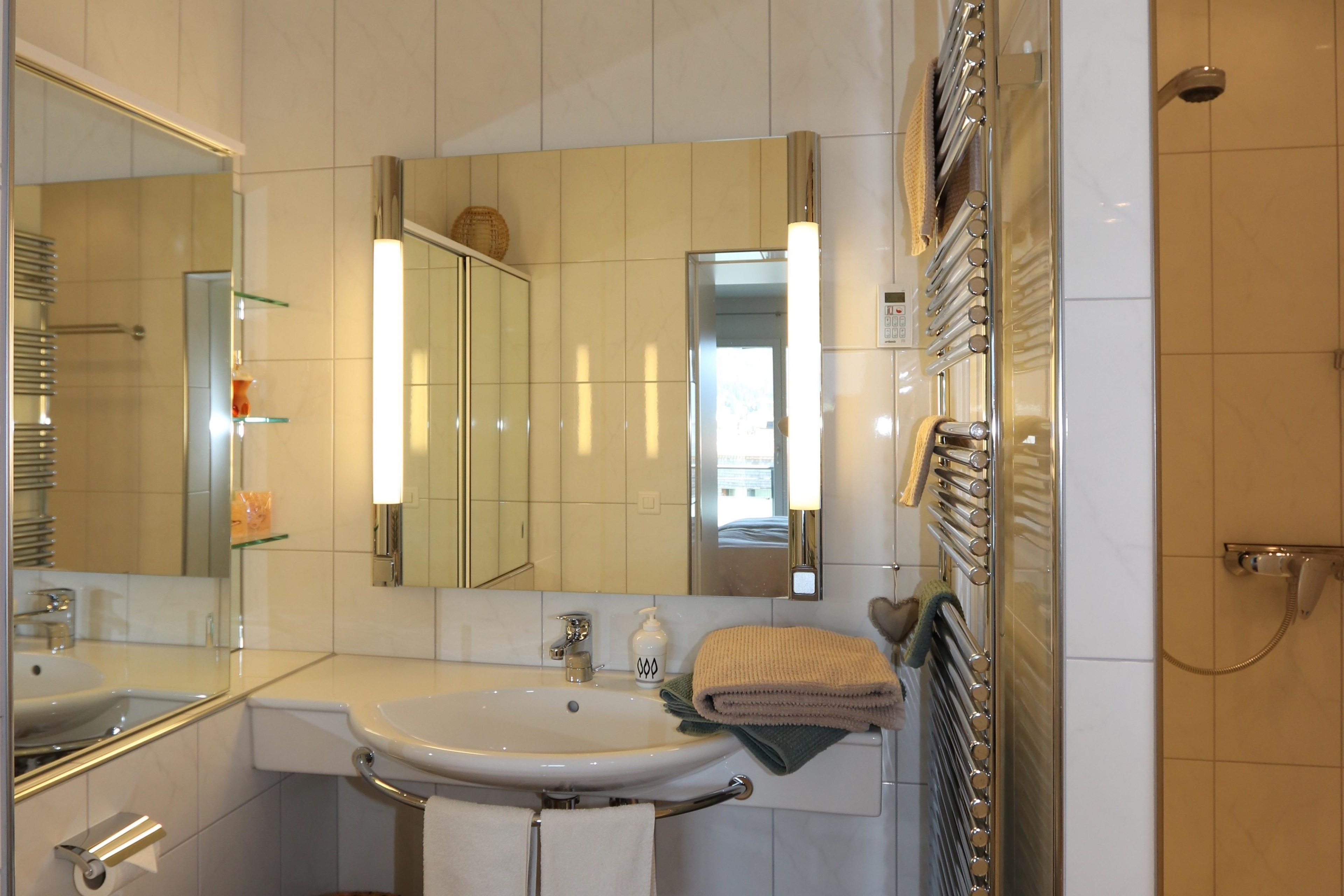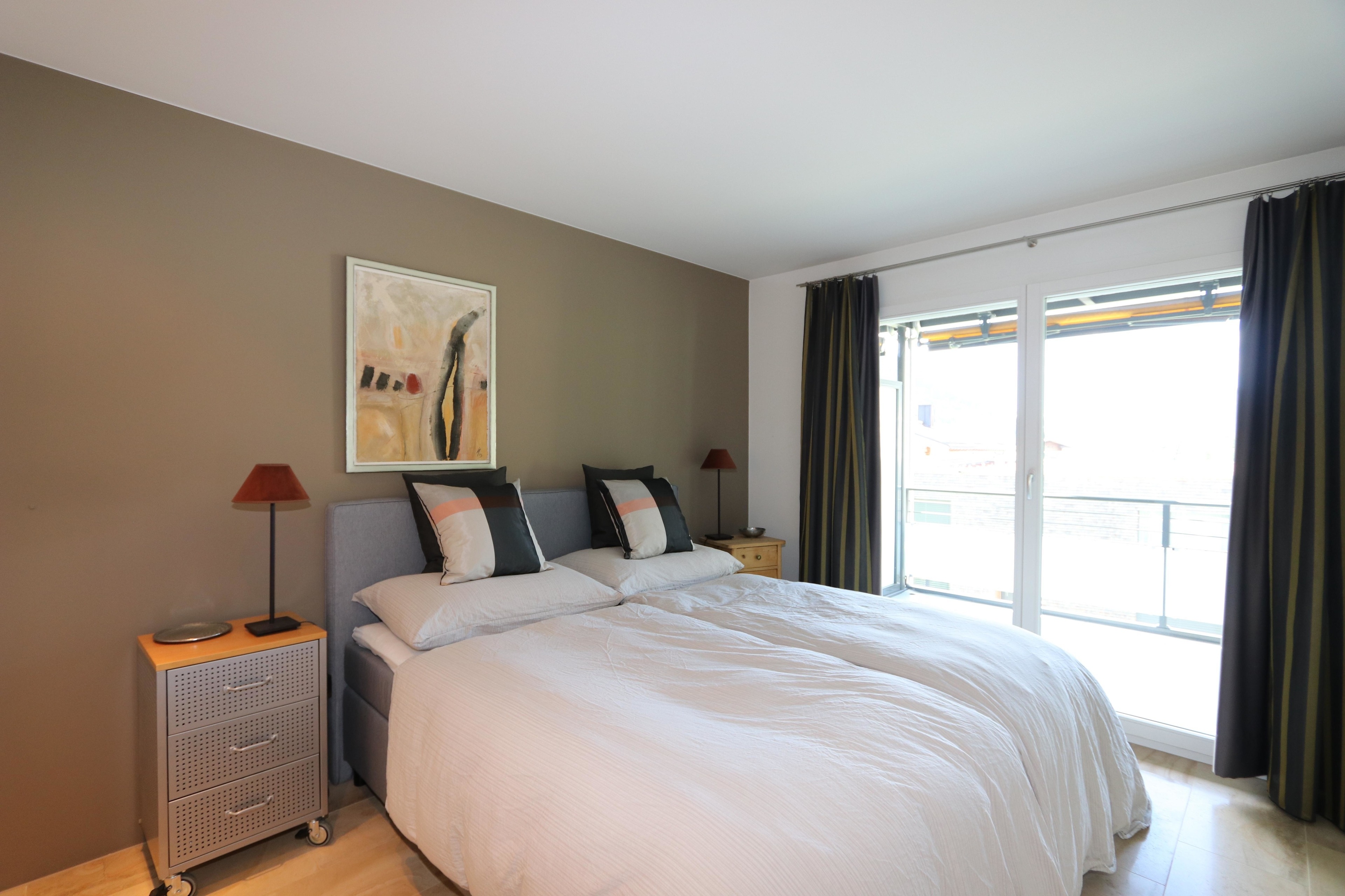 1 Schlafzimmer mit Doppelbett/Boxspringbett (2 Matratzen, 90x200), Dusche/WC.