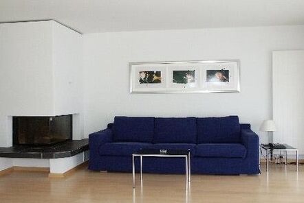 Wohnraum mit Sofabett, Essecke, TV, Kamin, WLAN.