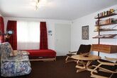 Wohnraum mit Polstergruppe, Essecke, 2 Betten untereinander ausziehbar, TV, WLAN.