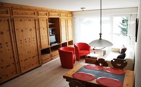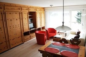 Wohnraum mit Polstergruppe, Essecke, 2 Klappbetten, LED-TV (Full HD), W-LAN.