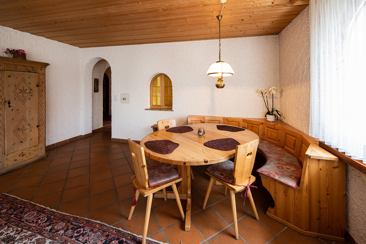 Wohnraum mit Polstergruppe, Essecke, TV, Wlan, Plattenboden.