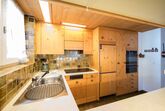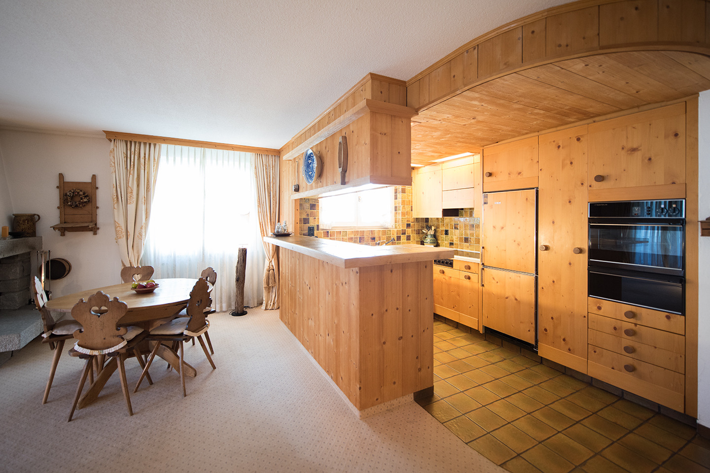 Offene Küche mit 5-Platten Glaskeramikherd, Kühlschrank, Gefrierschrank, Backofen,