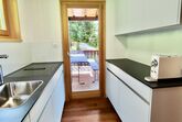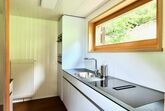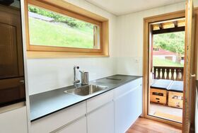 Separate Küche mit Fenster, mit 4-Platten Glaskeramikherd (Induktion), im Herd integrierter Dampfabzug,