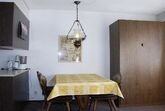 Offene Küche mit 4-Plattenherd, Kühlschrank mit Tiefgefrierfach, Backofen,