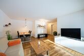 Wohnraum mit Bettsofa (160x200), Essecke, TV, W-LAN.