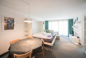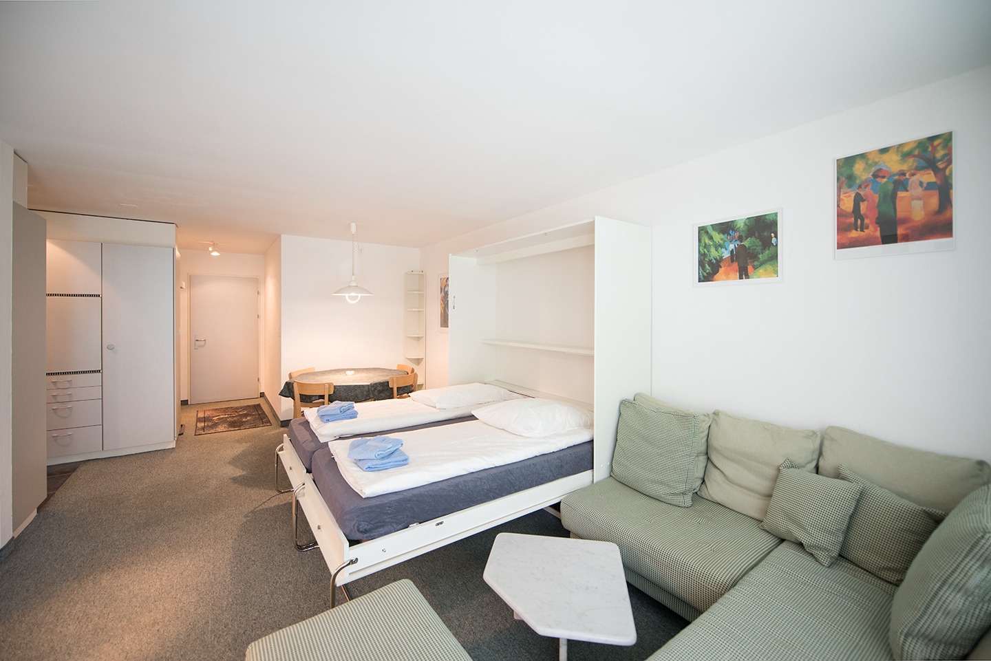 Wohnschlafraum mit 2 Klappbetten, Polstergruppe, Essecke, TV, Wlan.