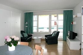 Wohnschlafraum mit 2 Klappbetten, Polstergruppe, Essecke, TV