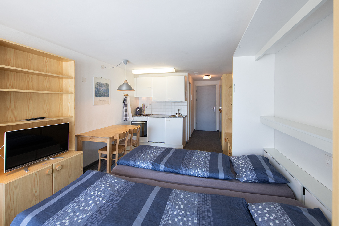 Wohnschlafraum mit 2 Klappbetten, Polstergruppe, Essecke, TV, W-LAN.