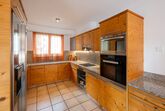 Offene Küche mit Fenster und Dampfabzug, mit 4-Platten Glaskeramikherd,