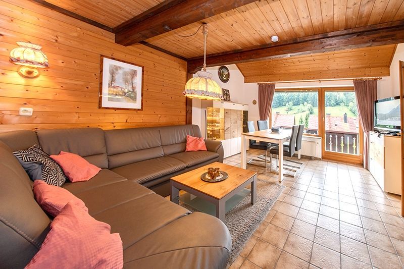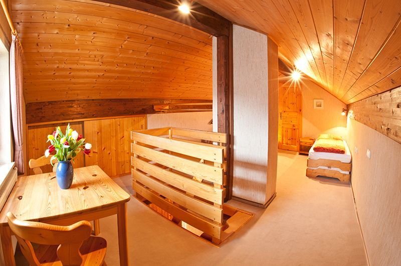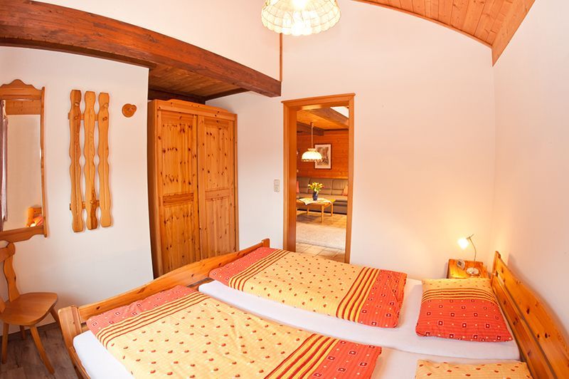 Die Ferienwohnung Enzian im Obergeschoss verfügt aufgrund der Hanglage über einen ebenerdigen Eingang.