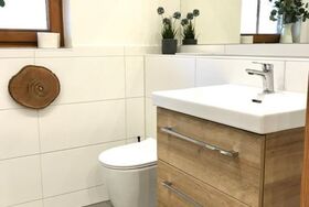 Die Ferienwohnung Enzian im Obergeschoss verfügt aufgrund der Hanglage über einen ebenerdigen Eingang.