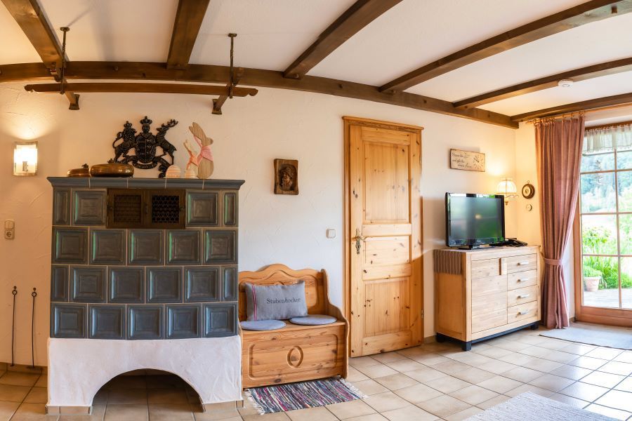 • in einigen Wohnungen ist ein Kachelofen oder Gusskamin