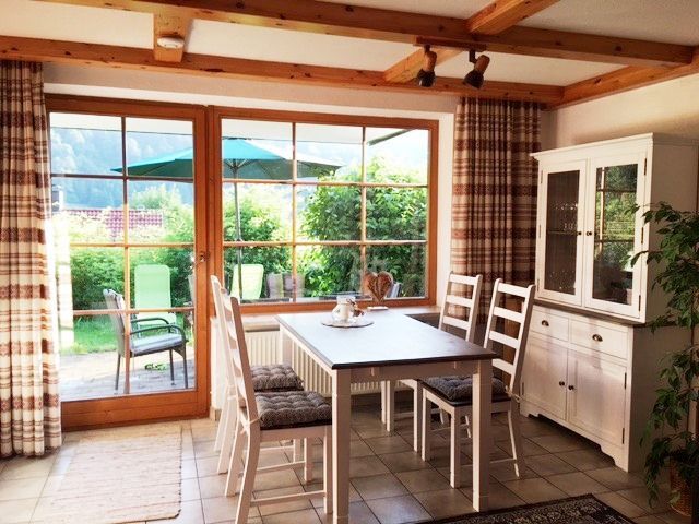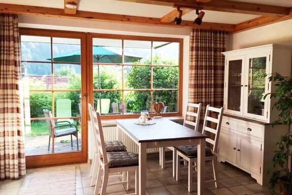 Die Ferienwohnung Enzian im Gartengeschoss ist besonders für Familien mit Kindern geeignet, da ein direkter Zugang zum Garten vorhanden ist.