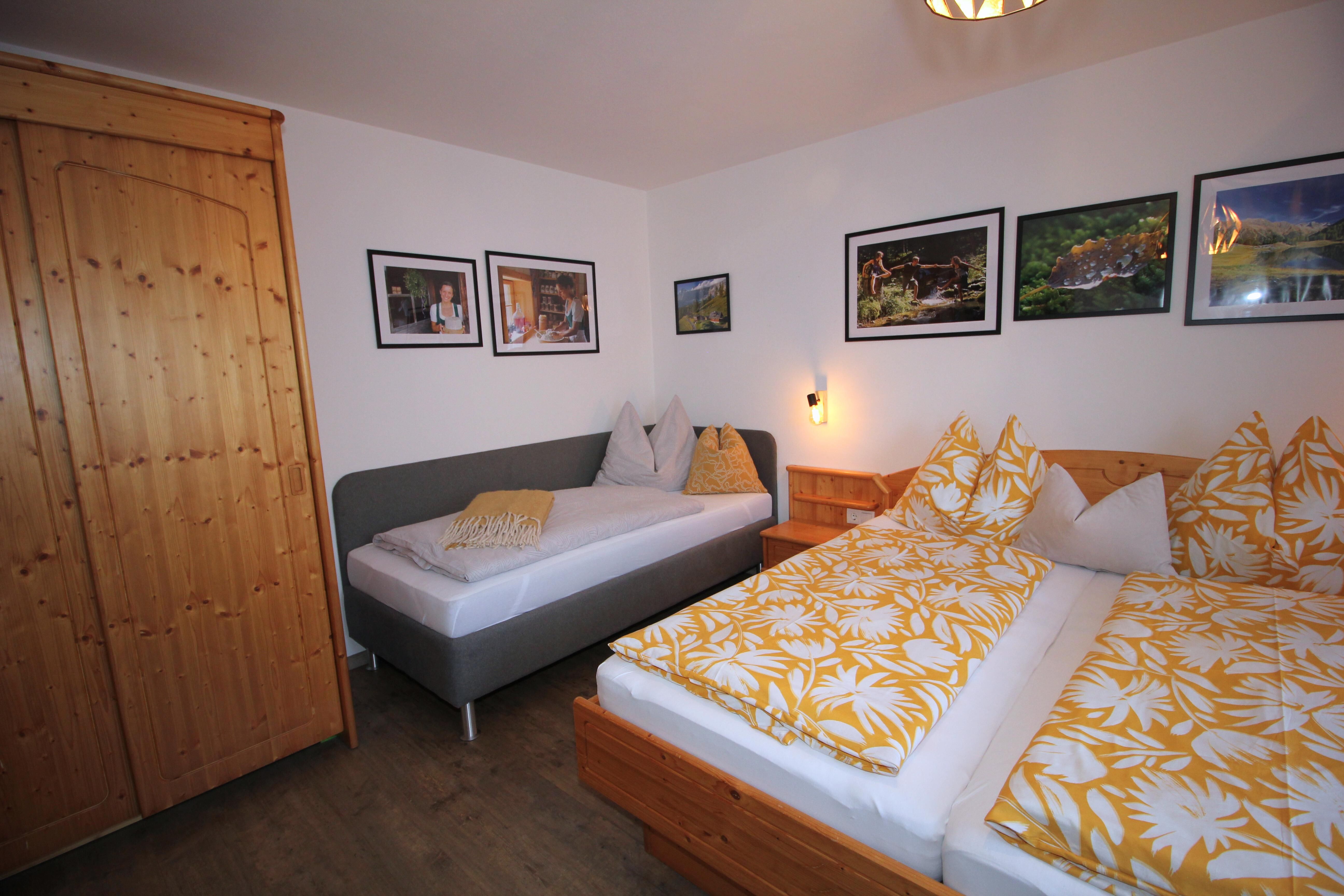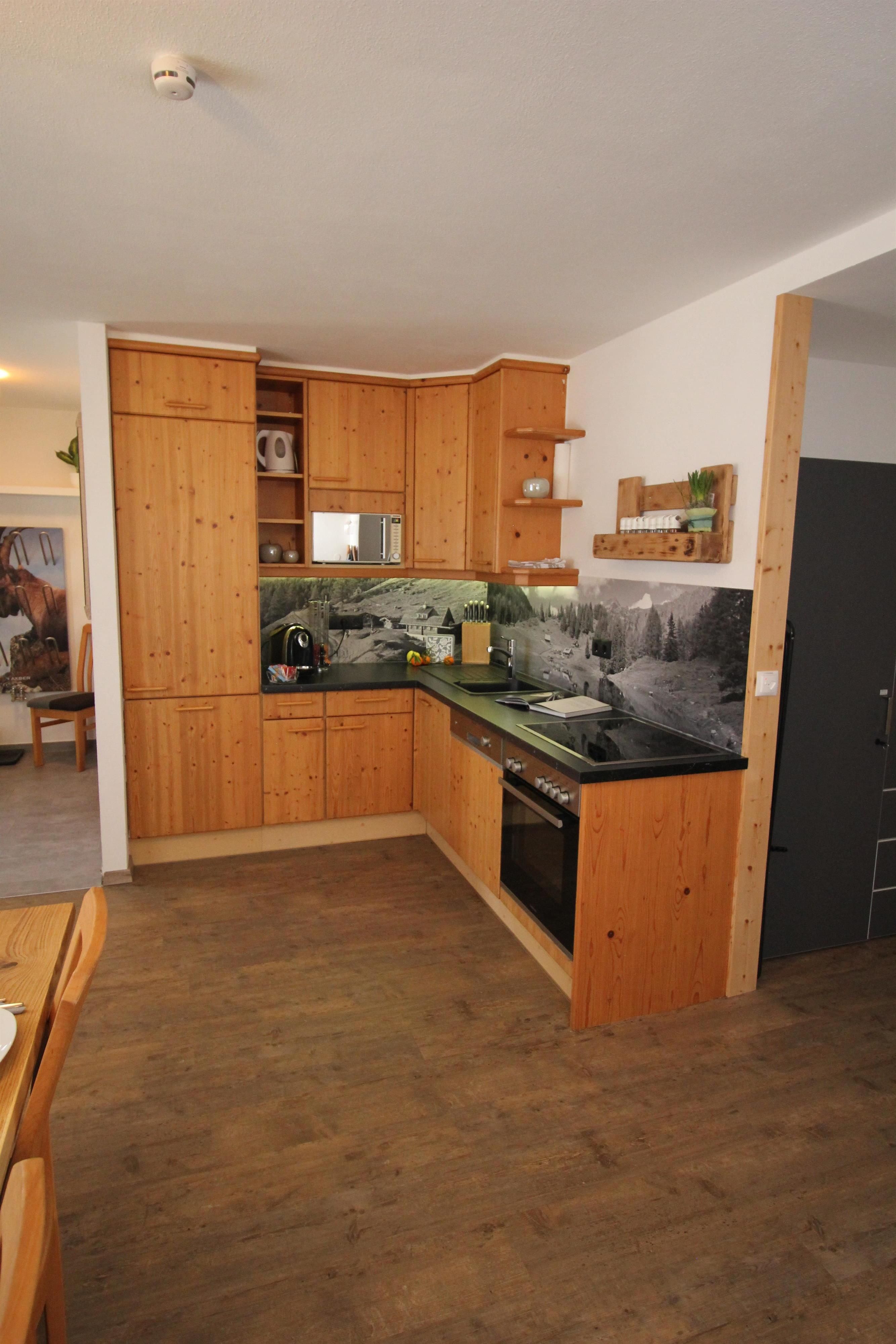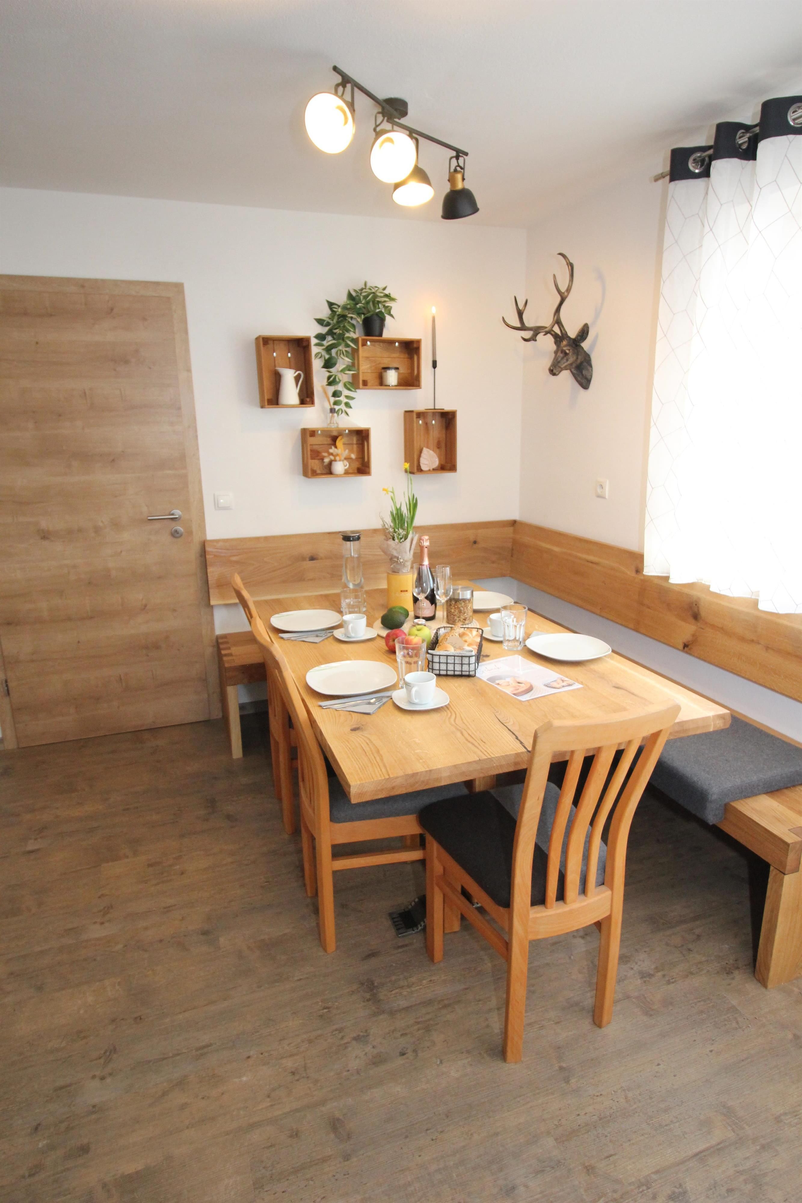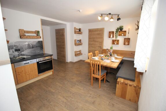 Unsere gemütliche Ferienwohnung für bis zu 5 Personen bietet zwei getrennte Schlafzimmer, eine voll ausgestattete Küche mit Kaffee, Tee und Gewürzen sowie einen großzügigen Essbereich. Badezimmer mit Waschmaschine, separates WC und ein kleiner Außenbereich mit Sitzgelegenheit sorgen für Komfort. Gitterbett und Hochstuhl sind auf Anfrage verfügbar. Wintersportler schätzen Skiraum mit Absperrmöglichkeit und Skischuhheizung. Ebenerdig, zentral gelegen und mit fantastischem Blick auf die umliegenden Berge und das Dachsteinmassiv.