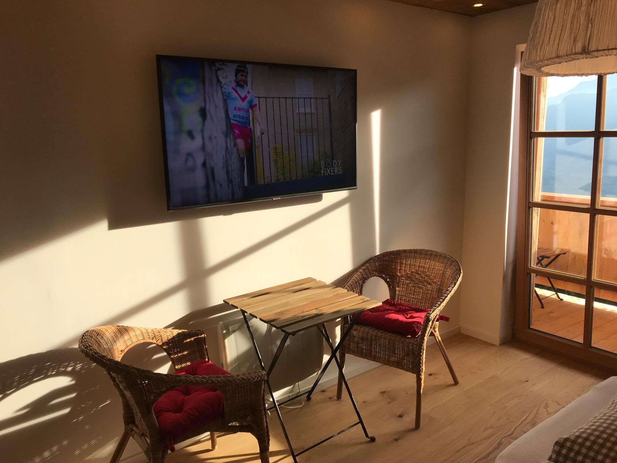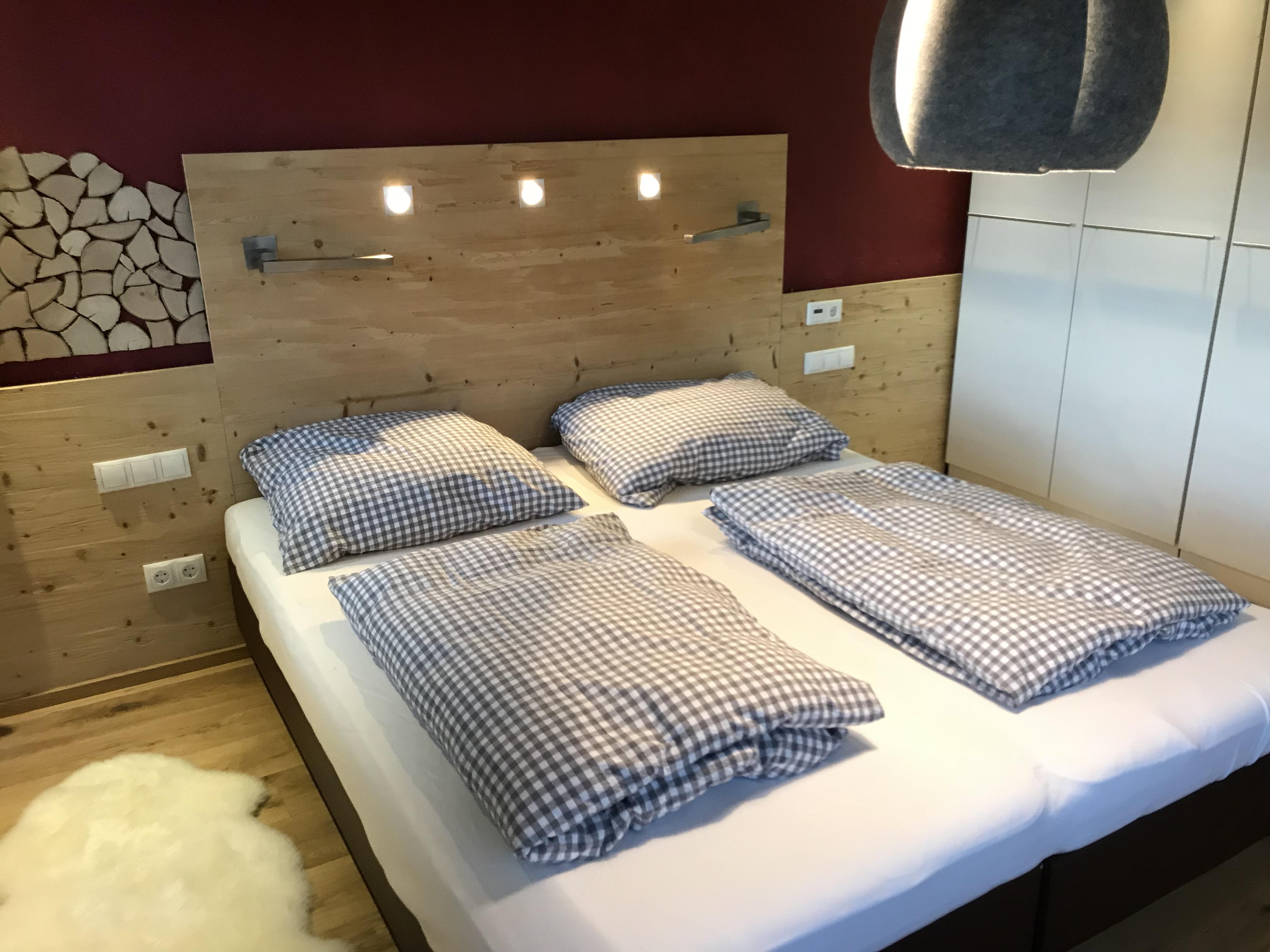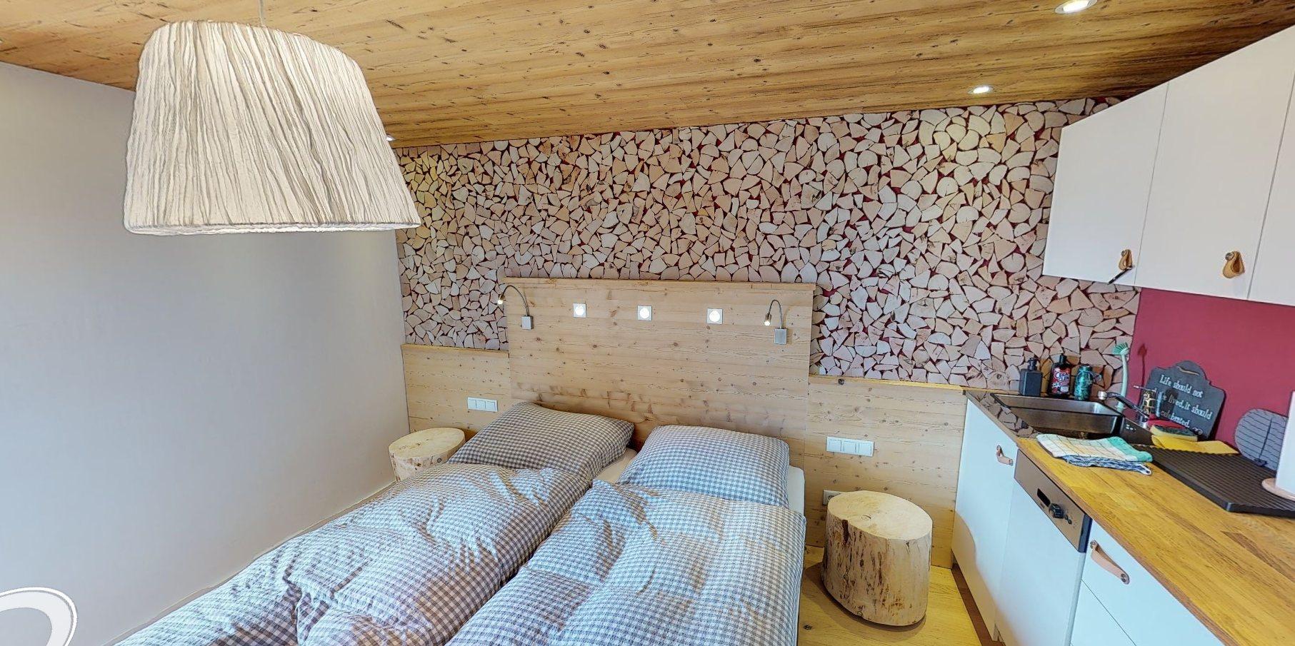 Die Ferienwohnung Freches Nannerl bietet im 1. Stock ein 26m² großes 1-Zimmer-Appartement mit separatem Eingang. Alles ist neu und hochwertig eingerichtet. Die Wohnung besteht aus einem Wohn-/Schlafraum mit Küche, Diele und großem Bad. Der helle Wohn-Schlafraum ist mit einer voll ausgestatteten Einbauküche, 2 Ledersesseln, großem Flat-Sat-TV, Echtholzparkett und Möbeln im Stadl-Look eingerichtet. Das Altholz wurde modern integriert und verleiht der Wohnung eine rustikale und gemütliche Atmosphäre.