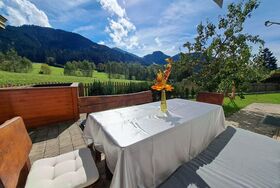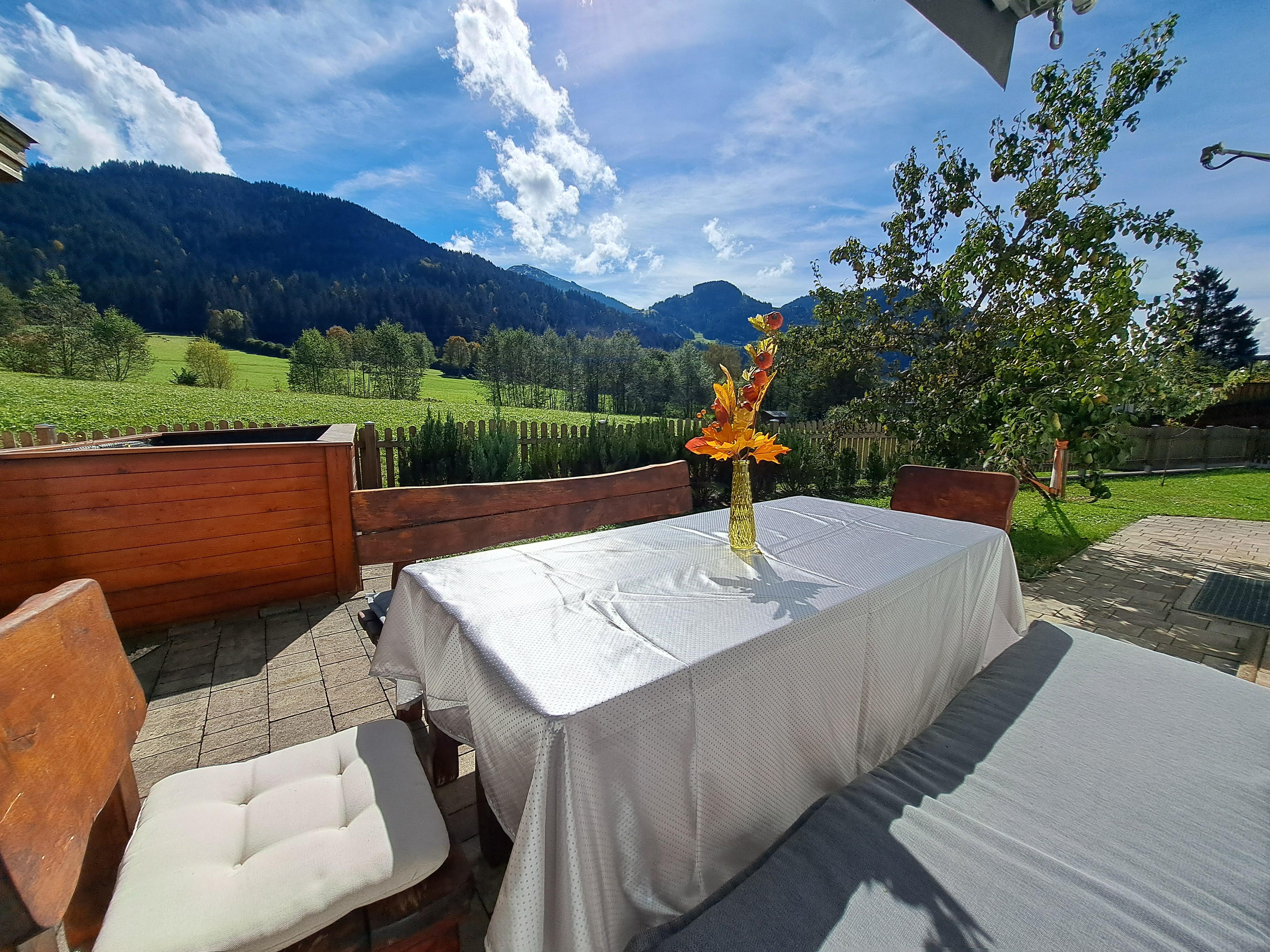 Unsere Ferienwohnung bietet eine herrliche Terrasse, von der aus Sie einen atemberaubenden Blick auf die Berge von Söll und ihre unberührte Natur genießen können. Für unsere jüngsten Gäste haben wir einen kleinen Spielplatz direkt vor dem Haus im Garten eingerichtet, damit jeder auf seine Kosten kommt.