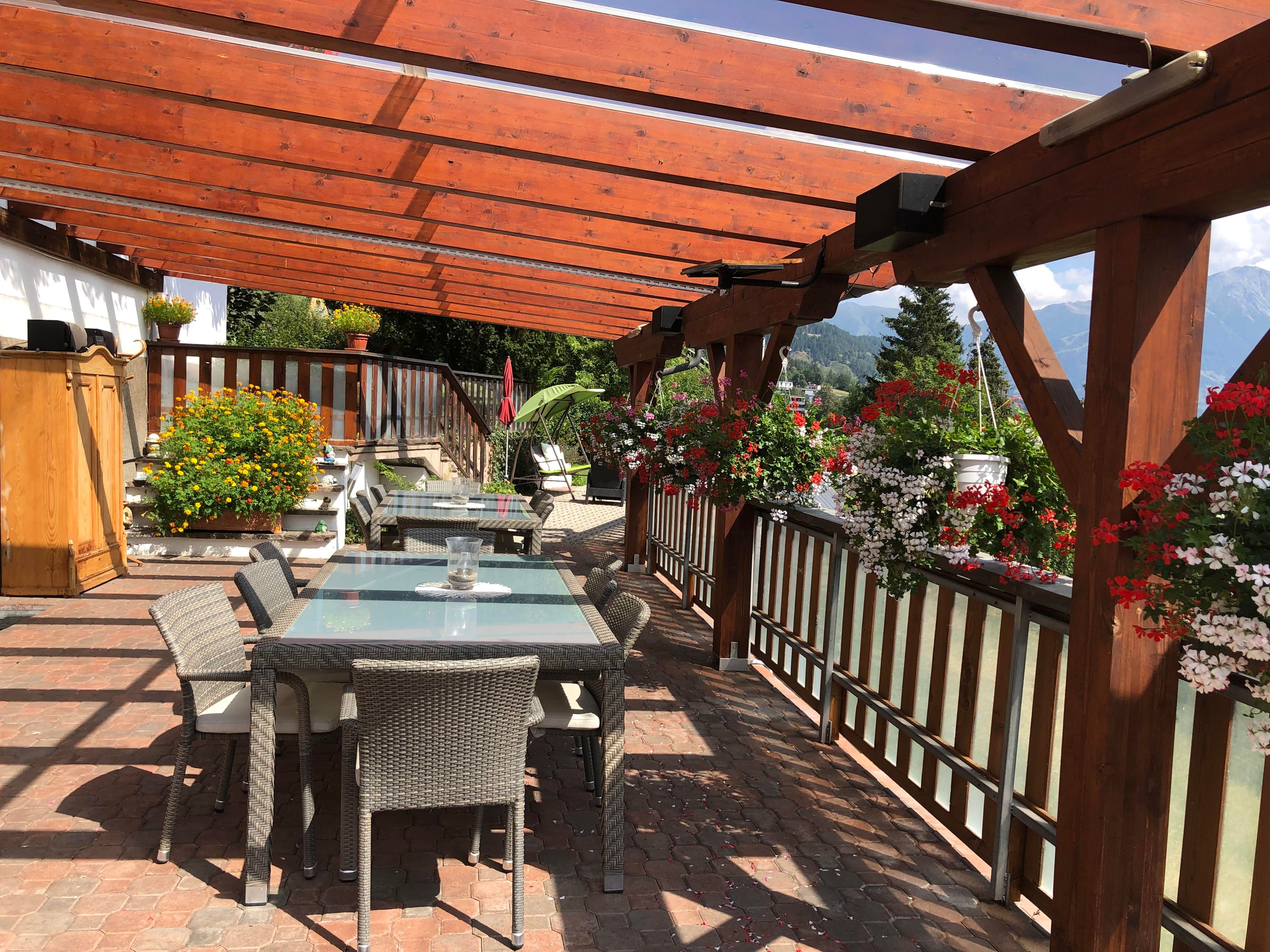 Entspannen Sie im großen Garten und auf unserer 60-m-langen Sonnenterrasse auf gemütlichen Loungemöbel den Panoramablick über Virgen genießend.