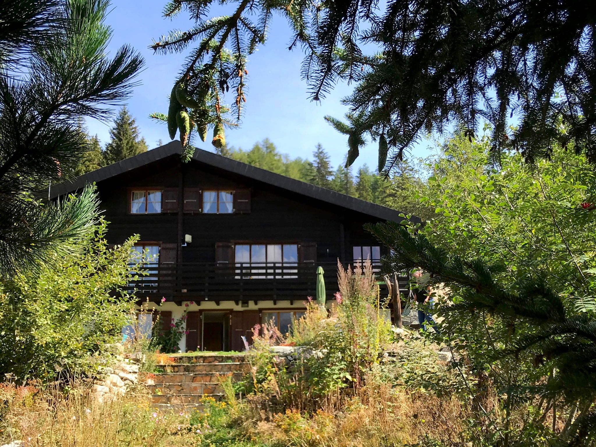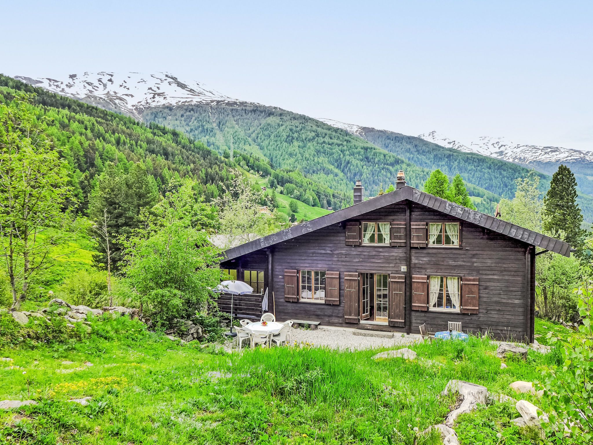 Kinderfreundliches, gemütliches, komfortables Chalet Chalet Kibou, 1'660 m.ü.M., auf 3 Stockwerken. 2 Wohnungen im Ferienhaus. Am Ortsrand, ruhige, sonnige, erhöhte Lage am Hang, 20 m vom Waldrand, 20 m vom Bach. Zur Alleinbenutzung: naturbelassenes Grundstück, Naturgarten, Liegewiese. Terrasse, Gartenmöbel. Im Hause: Zentralheizung. Zufahrt bis 300 m zum Haus. 180 m steiler Fussweg bis zum Haus. Parkplatz (für 2 Autos). Lebensmittelgeschäft 3.5 km, Bushaltestelle 300 m, Bahnstation Visp 10 km. Sessellift 1 km, Skipisten 500 m, Skiverleih 2 km, Skischule 2 km, Kinderskischule 2 km. Bekannte Skigebiete sind gut erreichbar: Bürchen- Moosalp. Bitte beachten: Babyausstattung auf Anfrage. Jugendgruppen nur auf Anfrage. Bei guter Schneelage Zufahrt mit den Skiern bis zum Haus.