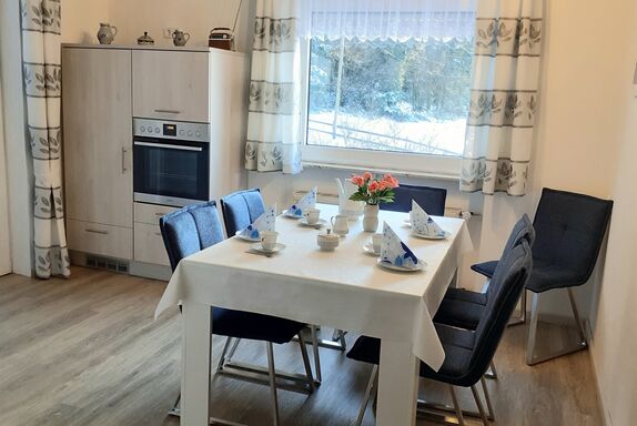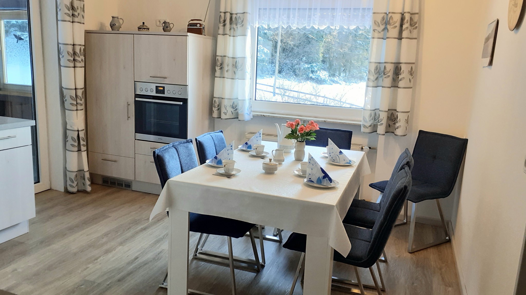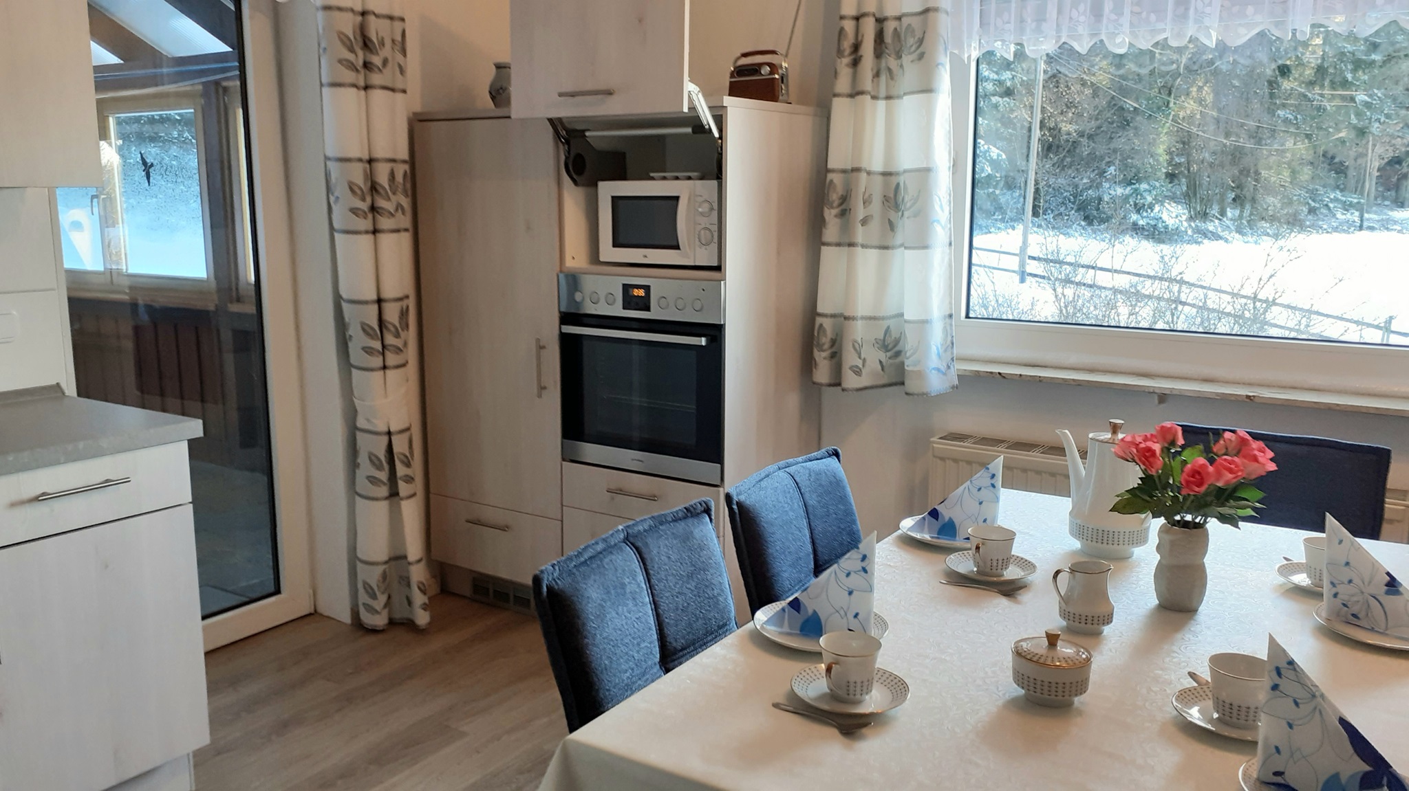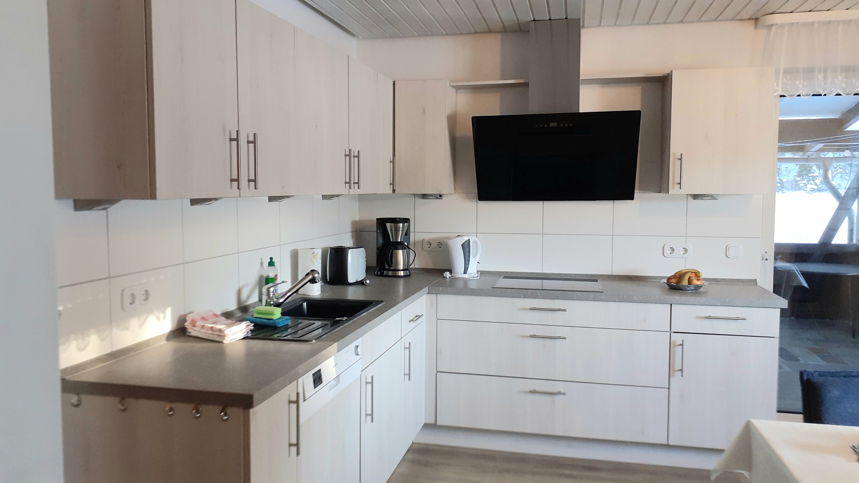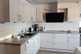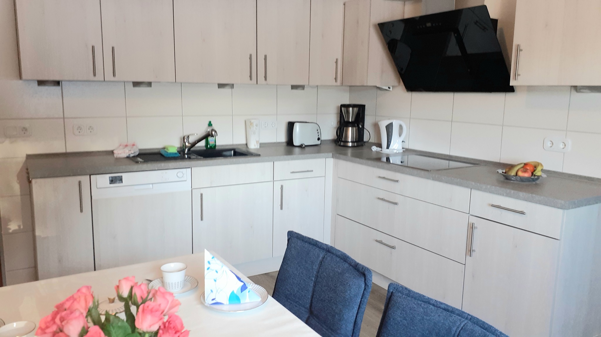 Die Küche ist mit Herd, Backofen, Mikrowelle, Wasserkocher, Kühlschrank mit Gefrierfach, Kaffeemaschine, Geschirrspüler, ausreichend Geschirr, Töpfe, Besteck und alles was man zum Kochen benötigt ausgestattet. Spülmittel und Geschirrtücher werden gestellt.