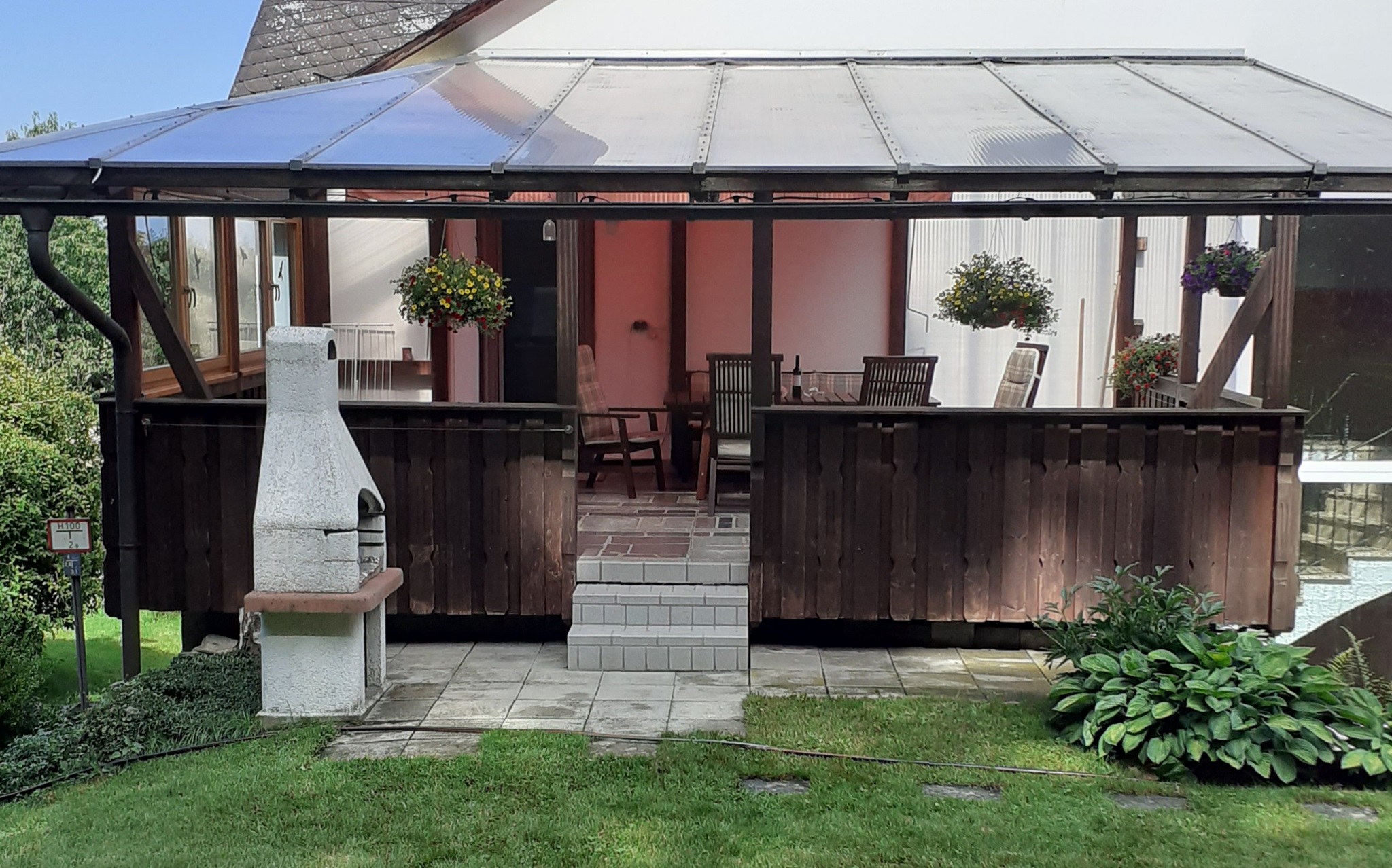 Auf unserem umfangreichen Areal (nicht umzäunt) stehen unseren Gästen ein Grill, ein Parkplatz oder Garage direkt neben dem Haus und den Kindern eine Schaukel und ein Sandspielkasten zur Verfügung.