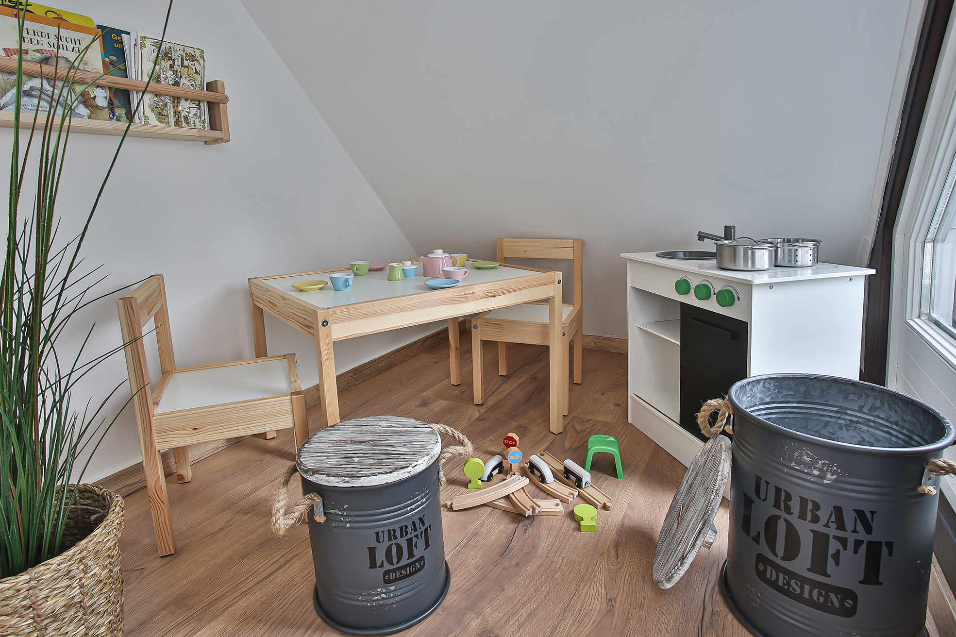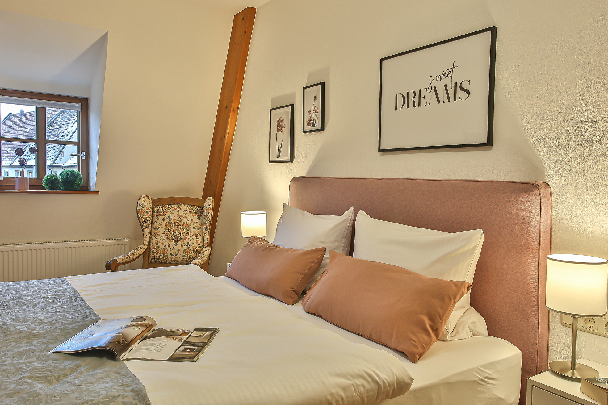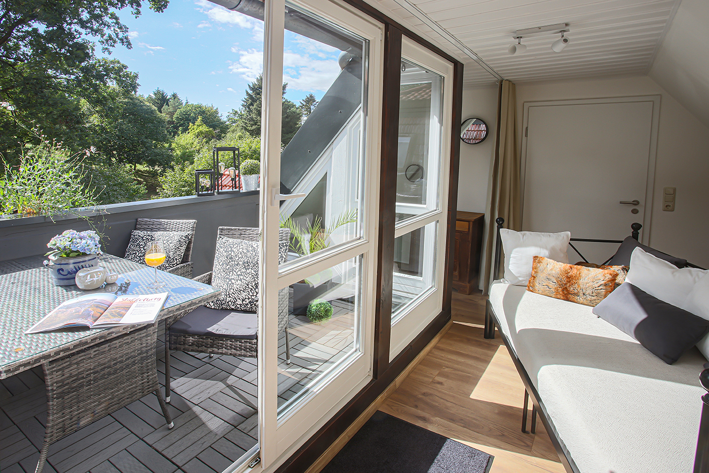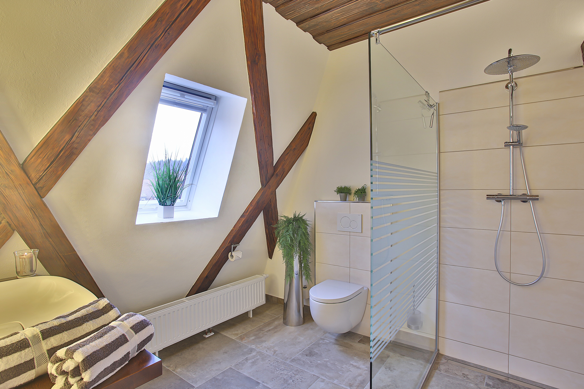 Ferienwohnung Klosterloft bietet für 1-6 Personen Platz und hat 140m². Es gibt ein DZ/TV, ein Zweibettzimmer, ein Loftzimmer mit zwei Einzelbetten. Wohnküche mit gemütlicher Essecke und Sofa /TV, Esszimmer mit großem Tisch, 1 Dusche/WC, 1 WC. Küche ist ausgestattet mit Induktionsherd, Backofen, Spülmaschine, Kühlschrank mit Gefrierfach, Toaster, Wasserkocher, Kaffeevollautomat. Bettwäsche und Handtücher sind vorhanden. Kostenlose Kinderausstattung auf Anfrage