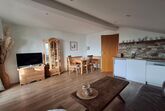 Die ländlich eingerichtete Wohnung hat einen TV im Schlafzimmer und einen TV im Wohnzimmer und eine voll ausgestattete Küche mit Kühlschrank und Kaffeemaschine uns Spülmaschine, sowie ein eigenes Badezimmer mit Dusche und Haartrockner.