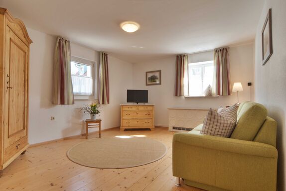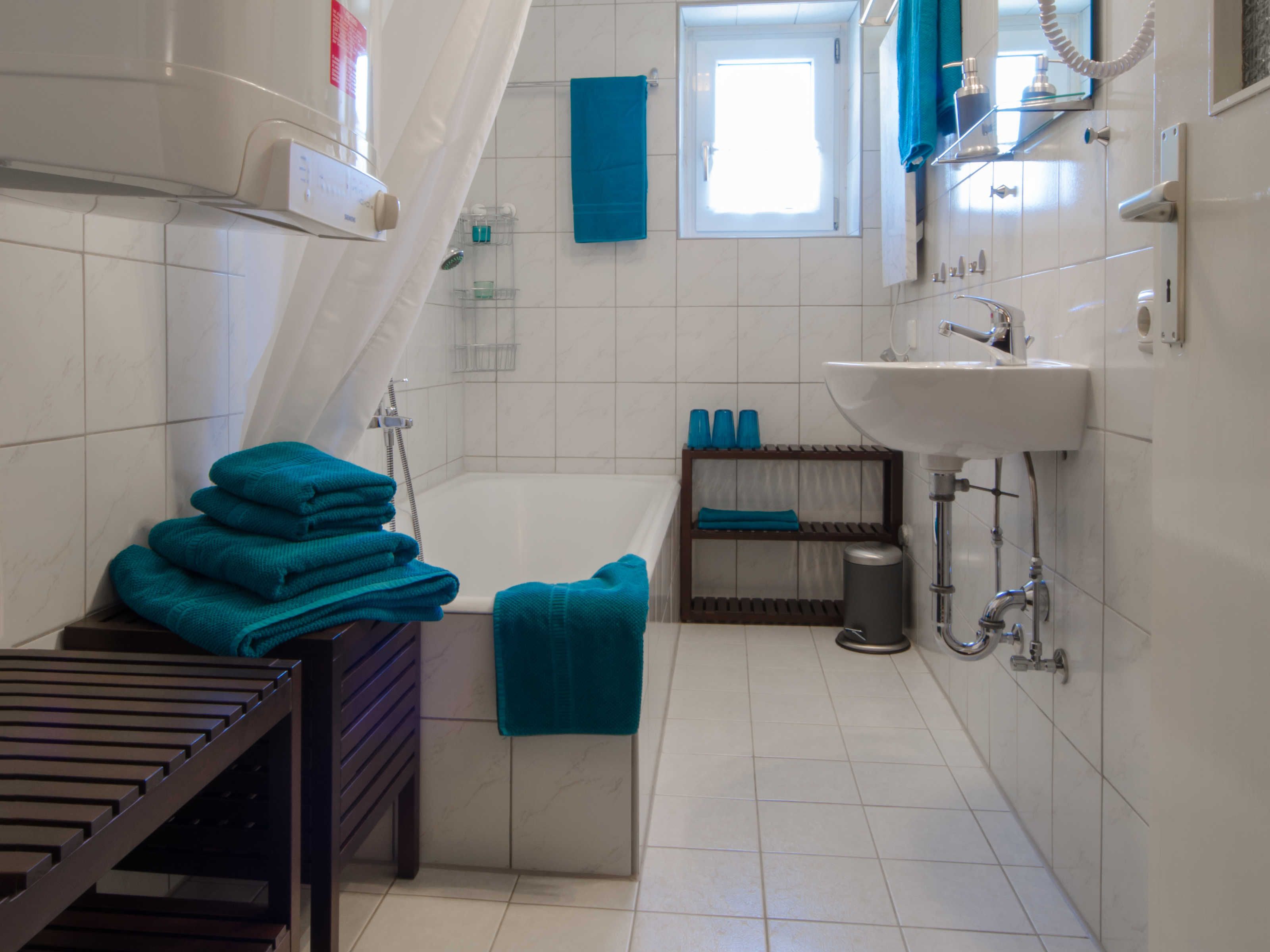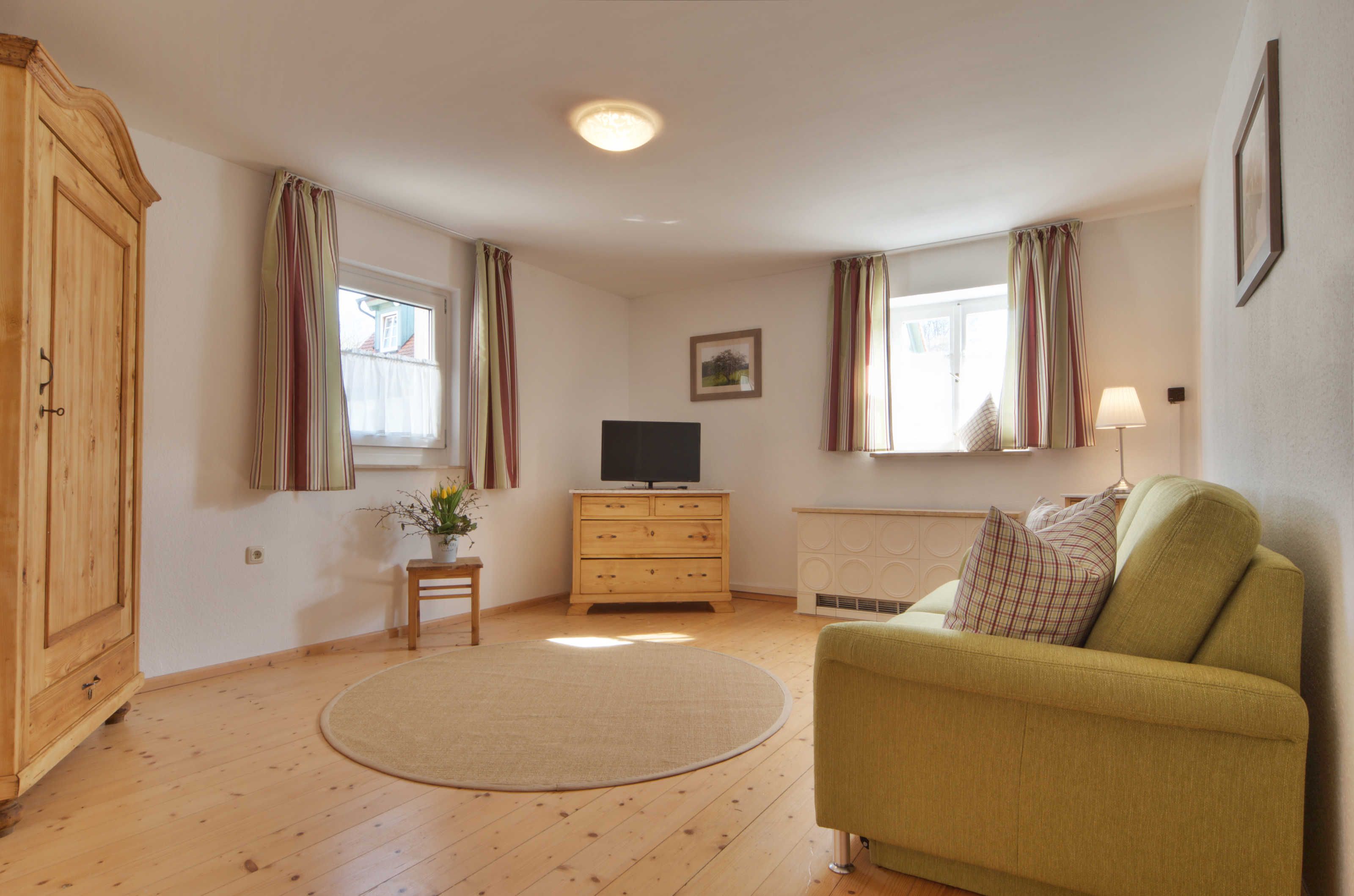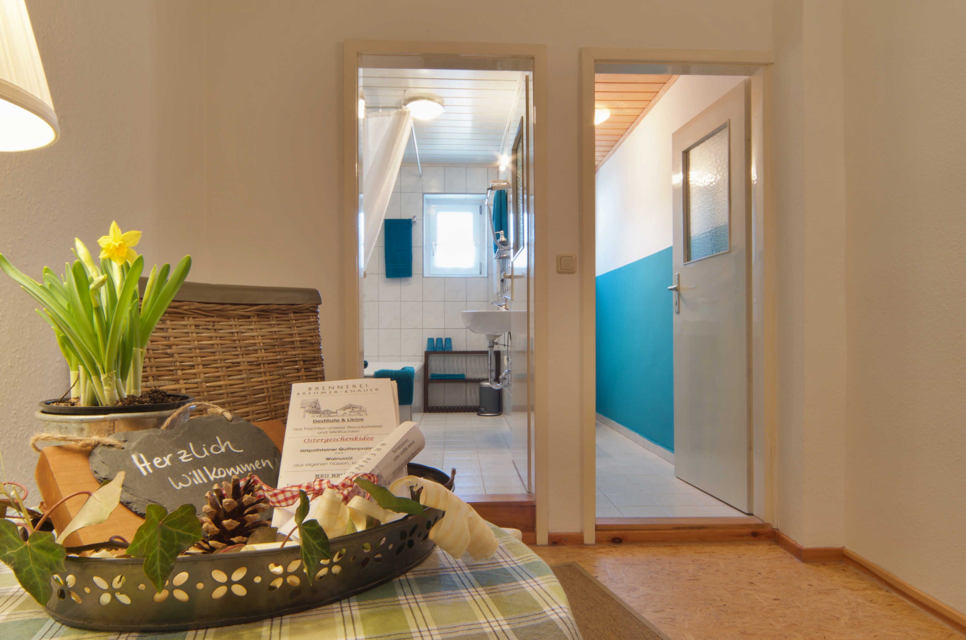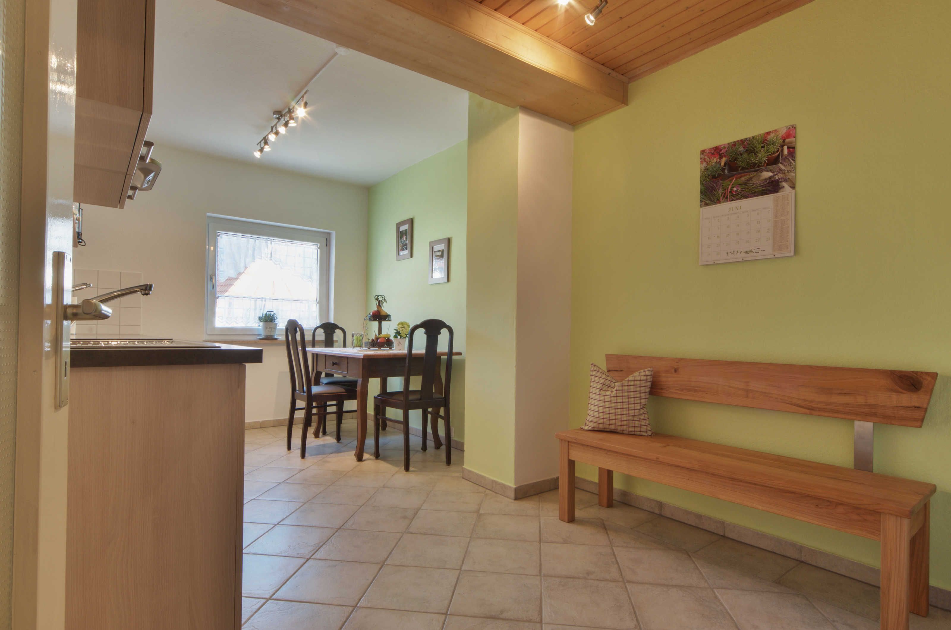 Auf 80qm bietet Ihnen unsere gemütliche Ferienwohnung eine geräumige Wohnküche, ein Schlafzimmer für 2 Personen, ein Wohn-Schlafzimmer für 2 weitere Personen, Badezimmer, separates WC und eine weitere Sitzgelegenheit im Flur.
