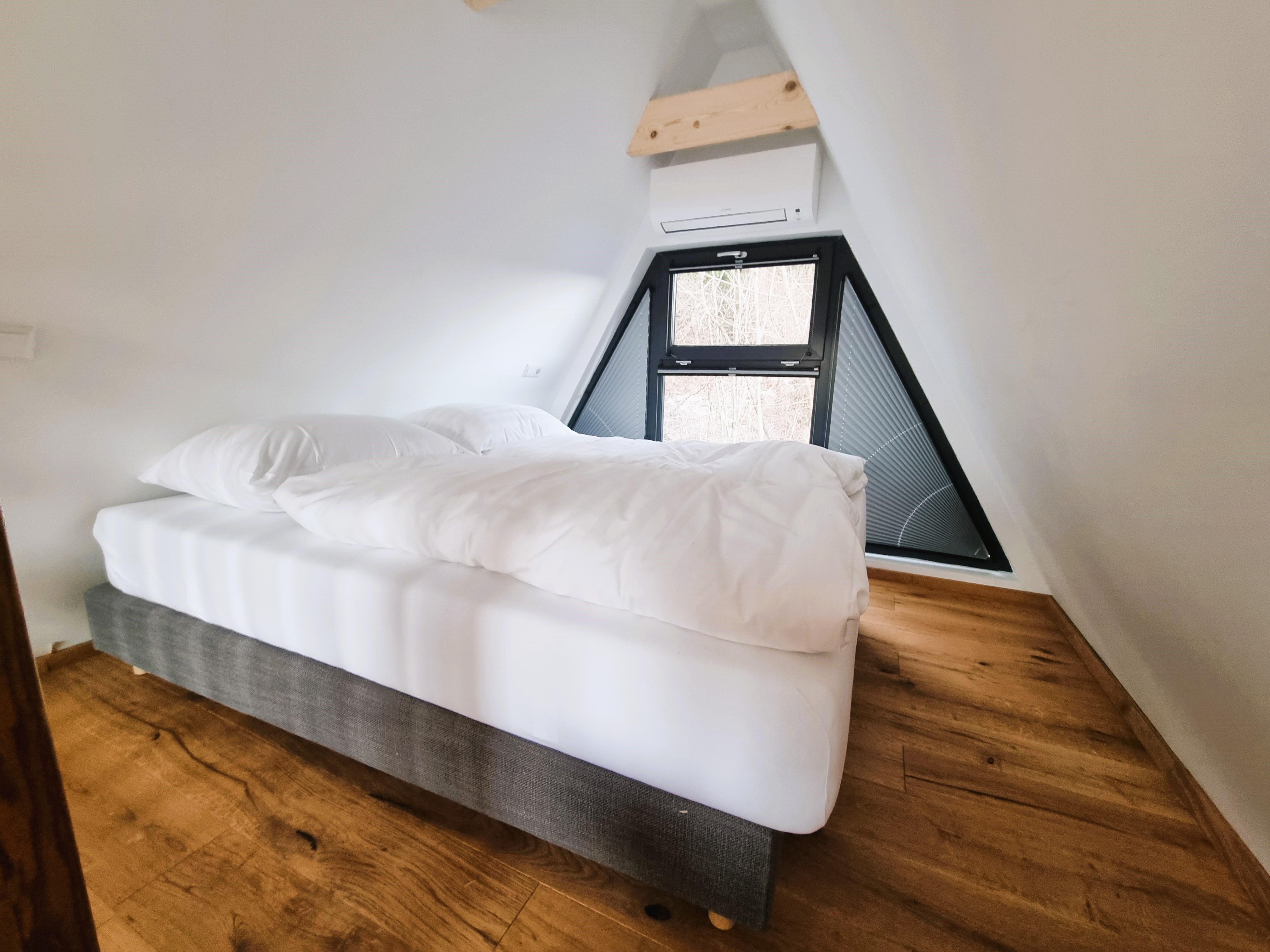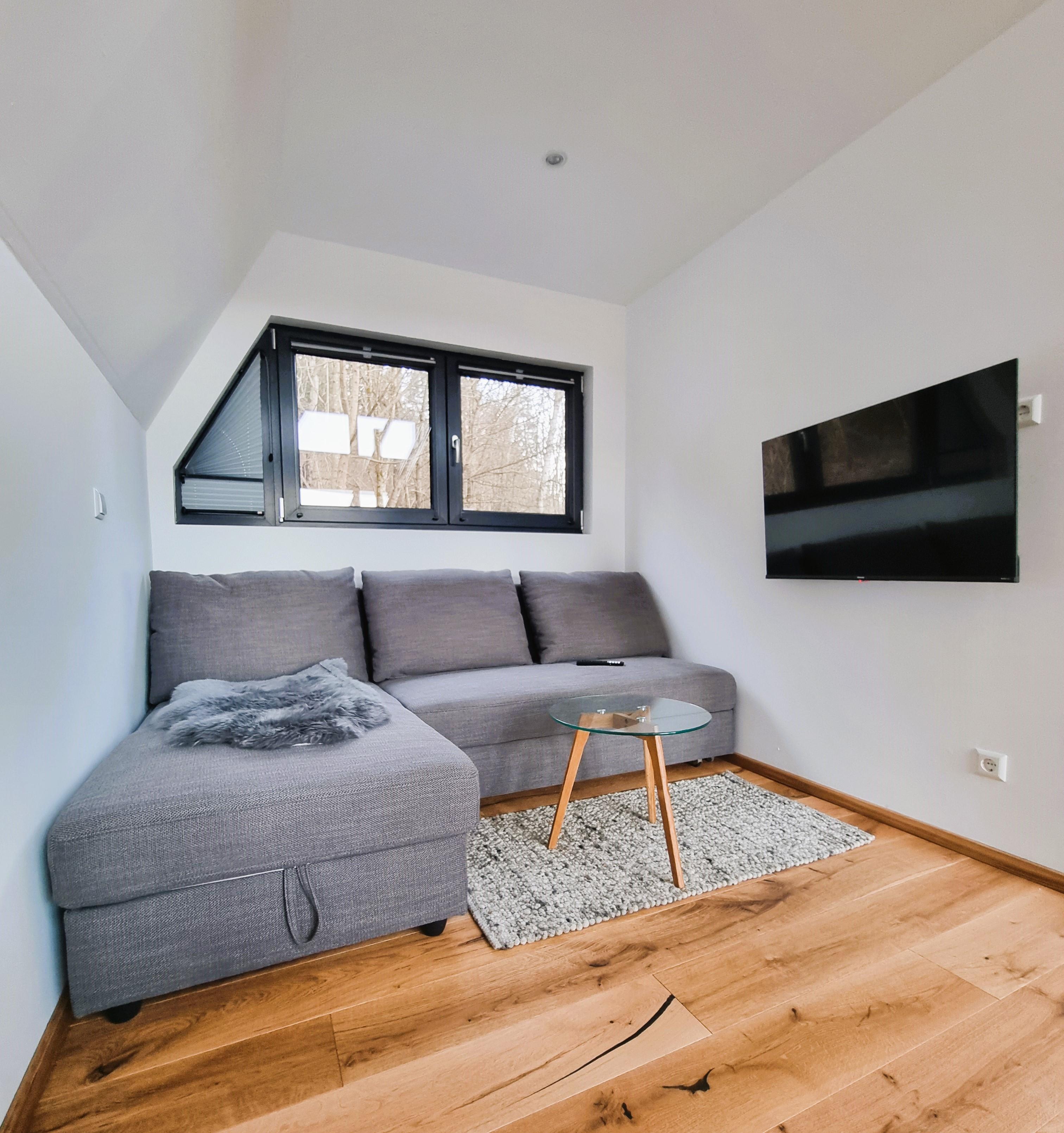 Das gemütliche Chalet im Chaletdorf Mountains & Lakes in Villach bietet Platz für 4 Erwachsene oder eine Familie mit 4 Kindern. Ein separater Eingang gewährleistet Privatsphäre. Große Fenster durchfluten die Räume mit Licht, während Parkettboden ein warmes Ambiente schafft. Die vollausgestattete Küchenzeile ermöglicht Selbstversorgung, und das Bad beeindruckt mit Steinfliesen. Schlafkomfort wird durch Boxspringbetten mit Premiummatratzen garantiert. Moderne Annehmlichkeiten wie schnelles Wifi (280 Mbit) und ein Smart TV stehen zur Verfügung. Ein sicherer Parkplatz ist inkludiert. Das Chalet liegt am Waldrand in Hanglage, mit einem malerischen Blick über Villach ins Drautal und die umliegenden Berge. Der Faaker See ist in unmittelbarer Nähe.