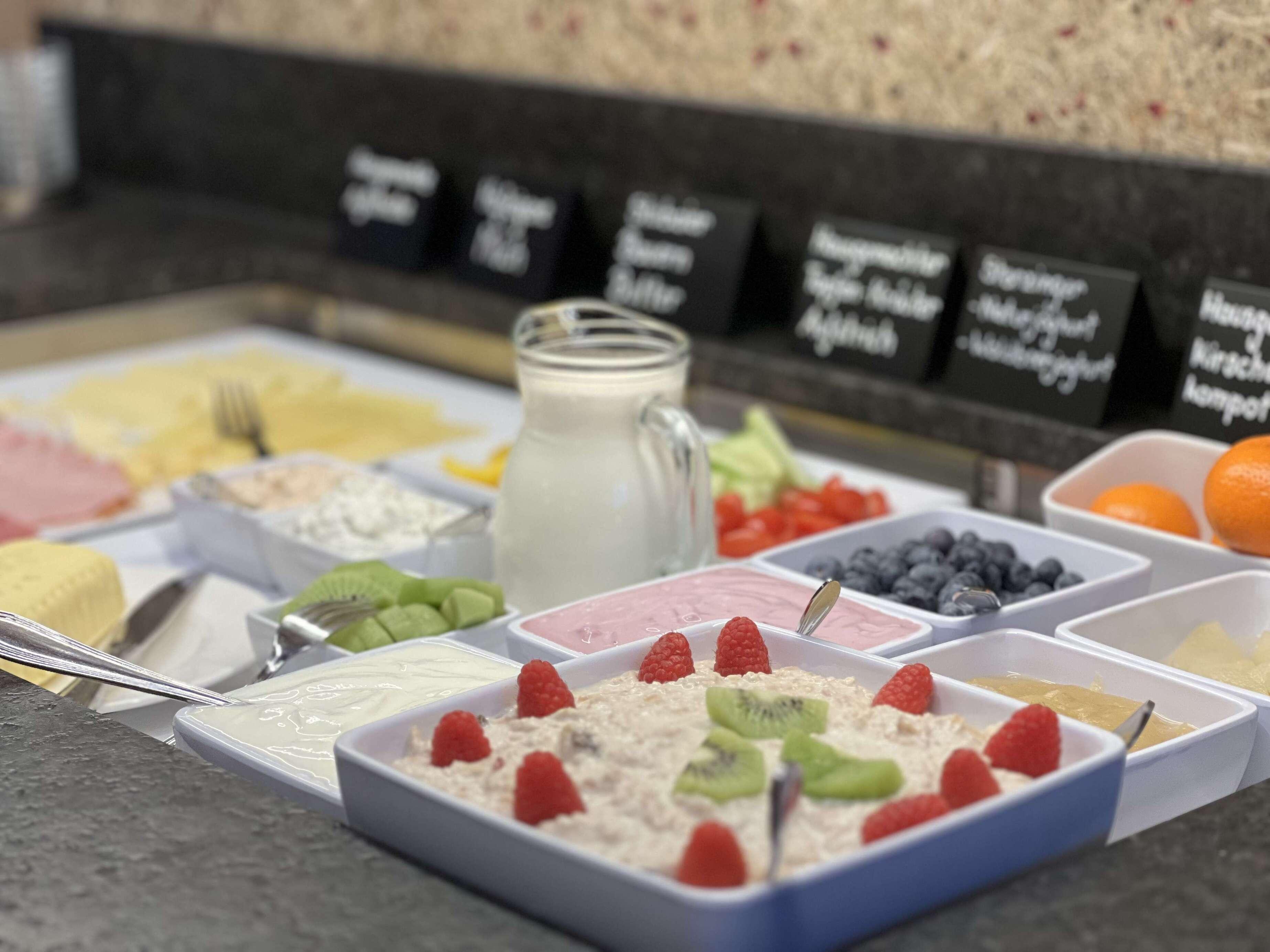 Für einen gesunden Start in Ihren Urlaubstag steht Ihnen als Gast unserer Komfortzimmer ein reichhaltiges Frühstücksbuffet mit regionalen und hofeigenen Köstlichkeiten aus unserer Landwirtschaft bereit. Es erwartet Sie selbstgebackenes Bauernbrot, diverse Brötchen, köstliche Bauernbutter, hofeigene Kuhmilch und Joghurt, regionale Wurst- und Käsesorten, hausgemachte Marmelade und Fruchtsäfte, selbstgebackene Kuchen, Müsli aus Dinkel- und Haferflocken, selbsterzeugte Brotaufstriche mit Topfen und frischer Obstsalat.