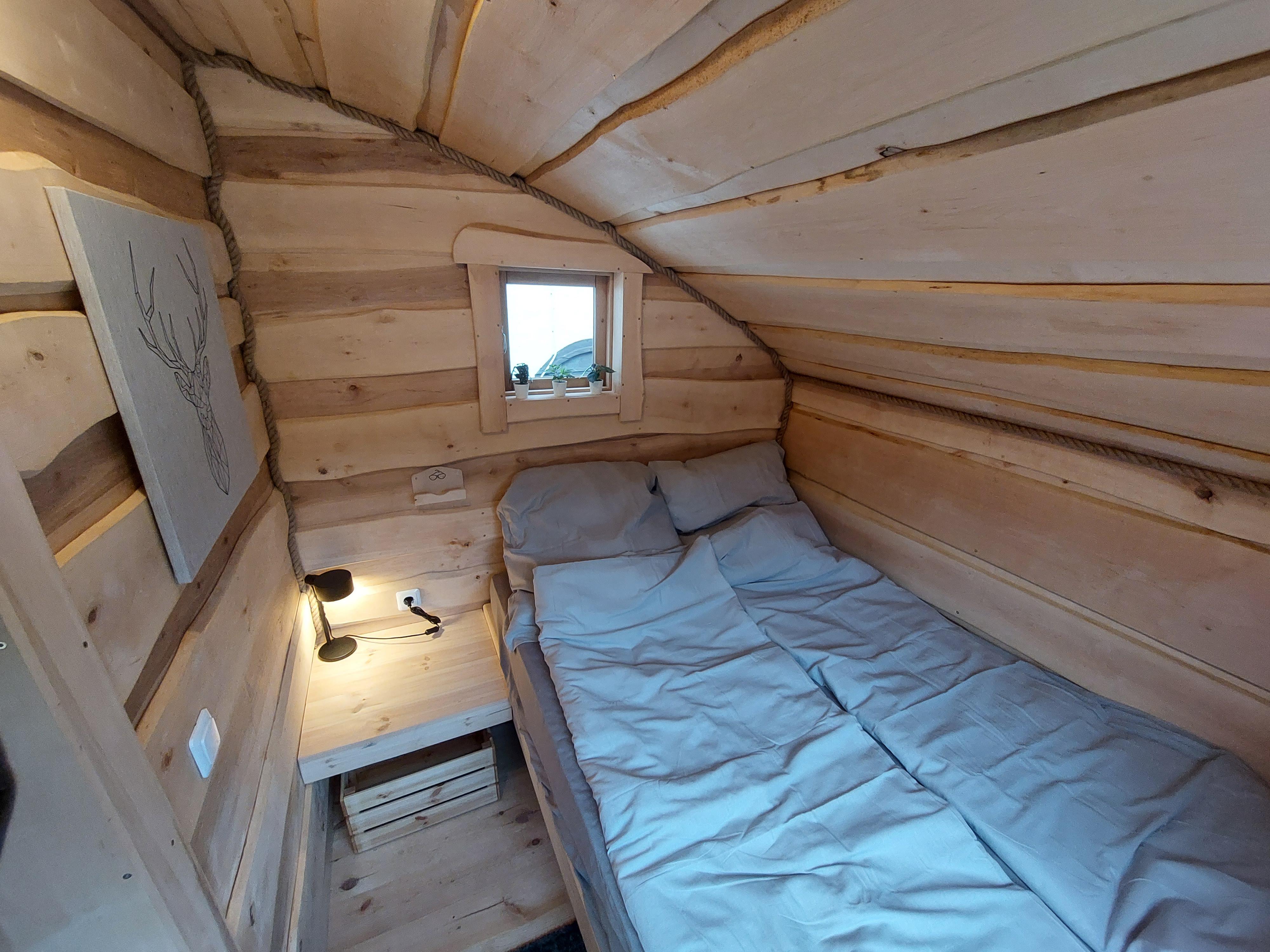 Unsere Schlafhöhle Traudi bietet bequem Platz für bis zu 2 Personen mit einem Schlafbereichen und einem separaten Essbereich.
