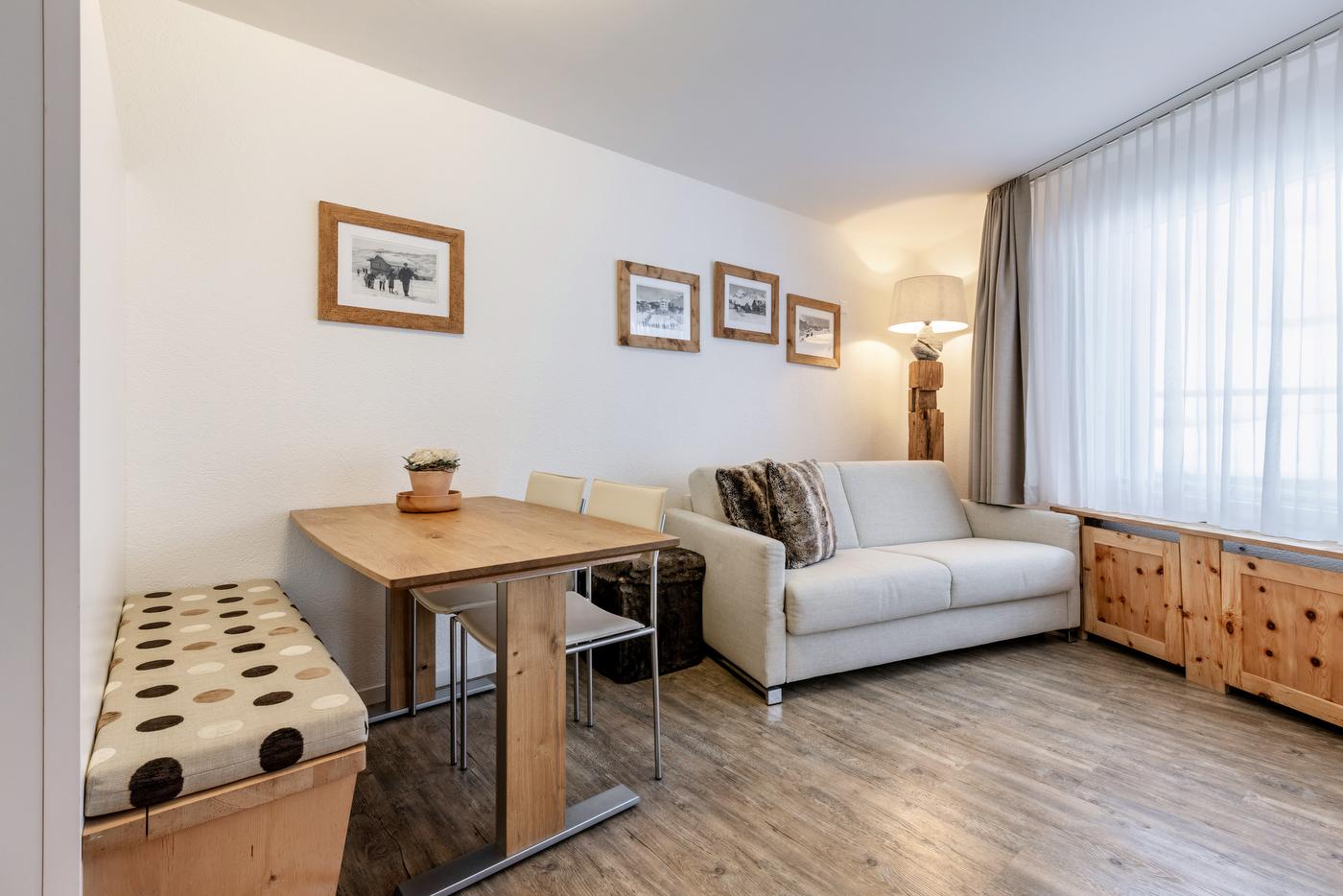 Die Essecke und das gemütliche Sofa laden zum Verweilen und Geniessen ein.