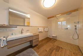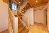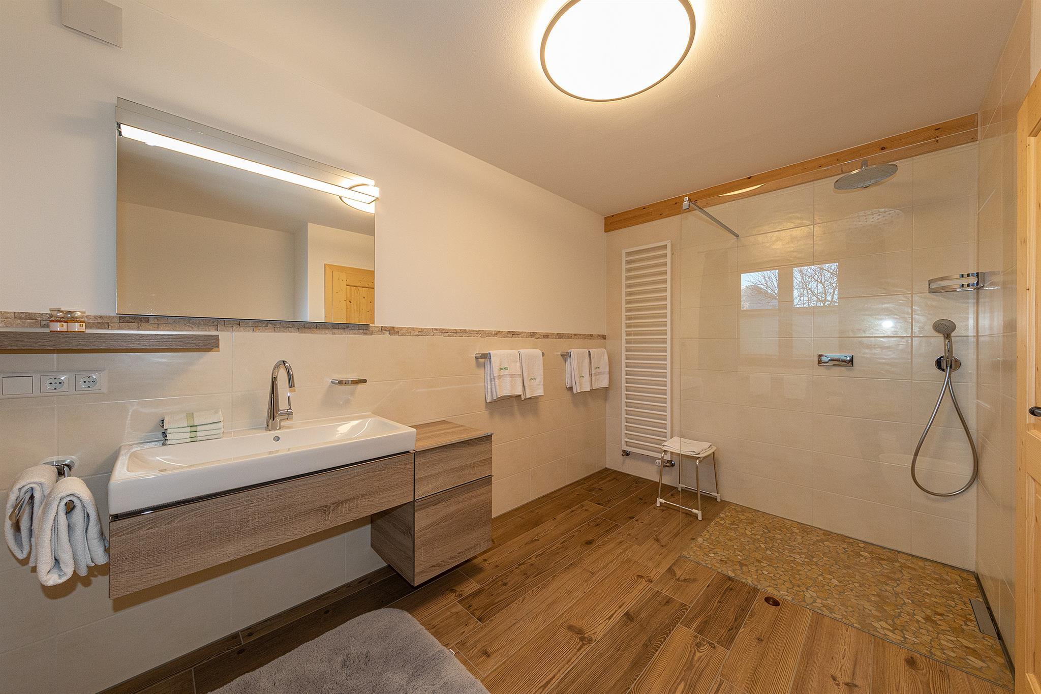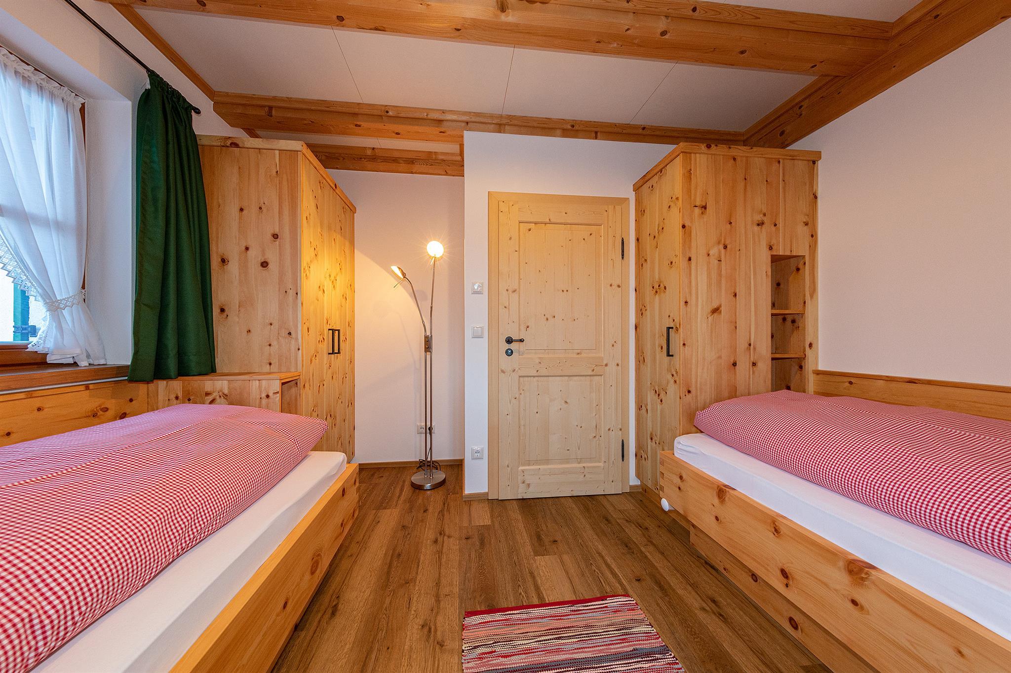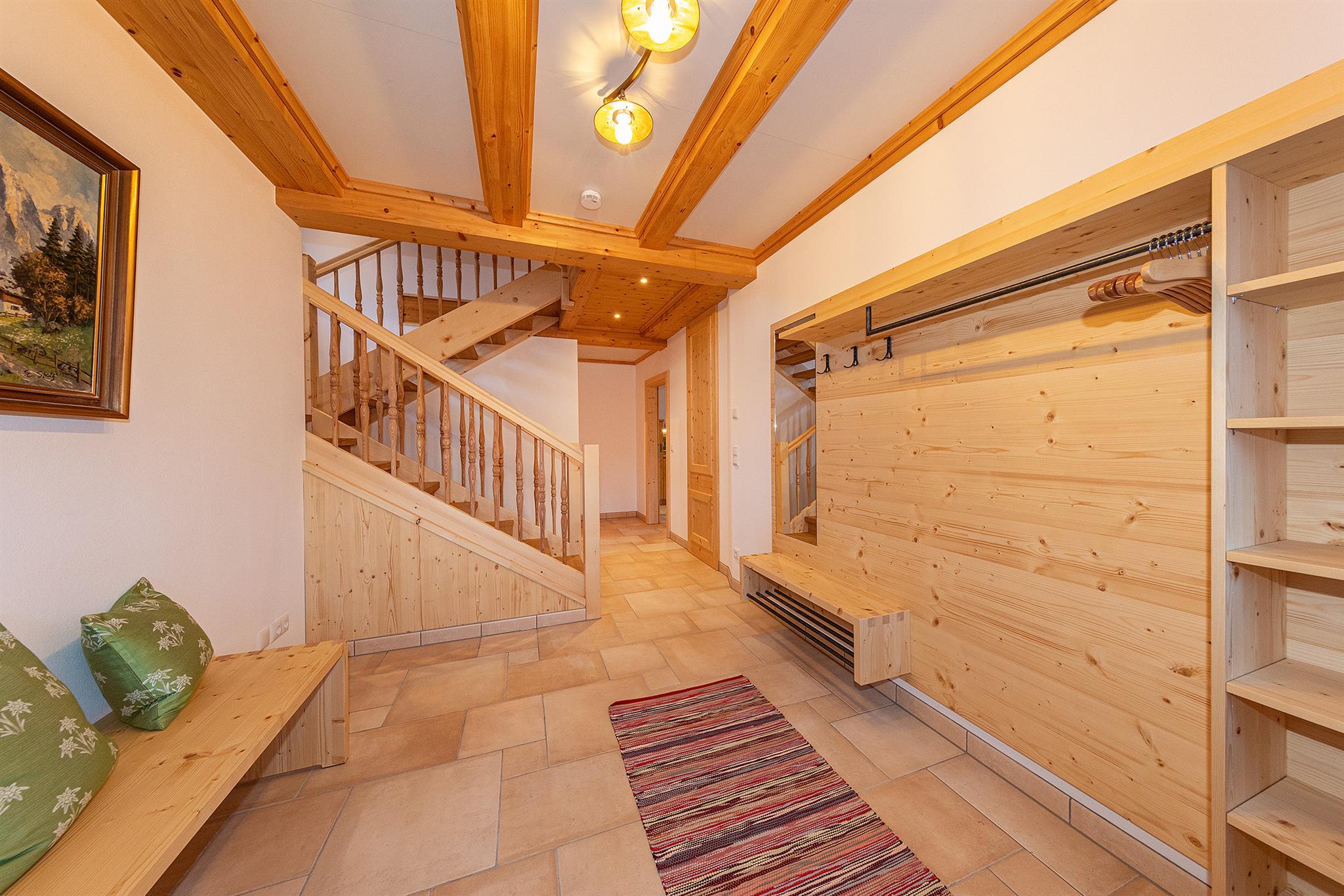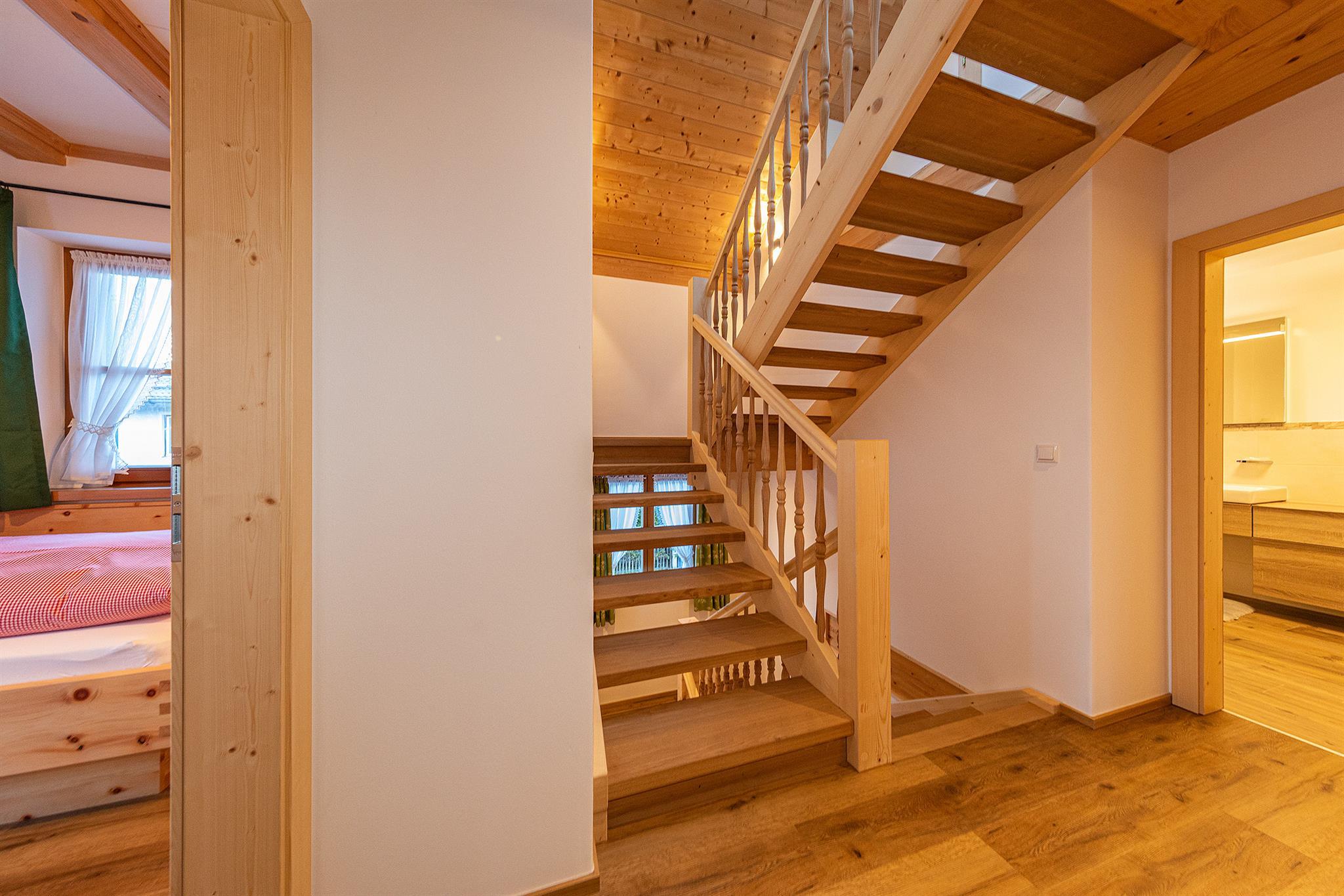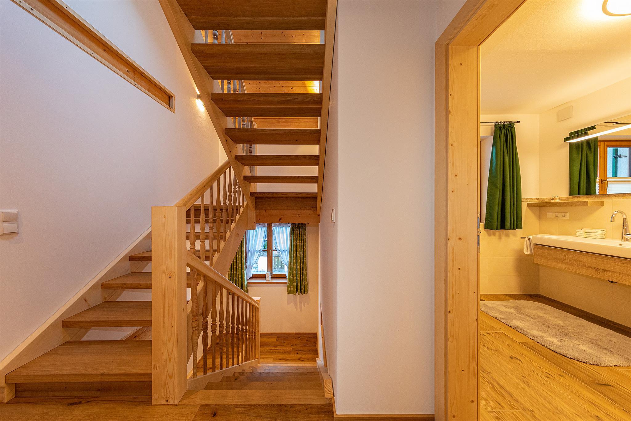 Um Ihren Aufenthalt so angenehm wie möglich zu gestalten, ist die Haushälfte STOARÖSERL (Süd–West) mit seinem Eingangsbereich /Flur mit einer Garderobe eingerichtet. Auch ein Tages –WC und Wirtschaftsfraum (WM +TR) befindet sich im EG. Die Komfort-Küche mit Essecke ist komplett eingerichtet und ausgestattet. Der Wohnbereich bietet mit Couchen und Sessel viel Platz für gemütliche Abende. Von beiden Räumen können Sie die möblierte Südterrasse betreten. Im 1.OG finden Sie ihre drei Schlafzimmer welche aus Zirbenholz handgemacht sind. Von allen Schlafzimmern (2 Doppelschlafzimmer und einem Schlafzimmer mit 2 einzelnen Betten 90x200 cm, haben Sie Zutritt auf die Balkone. Das großzügige Familienbad hat neben der ebenerdigen Relaxdusche , WC, BIDET, Handtuchwärmekörper und einen großen Waschtisch und Fön viel Platz für Sie. Für höchste Sauberkeit ist die gesamte Wohnung nur mit Holz- und Steinböden ausgestattet und somit für Allergiker geeignet.