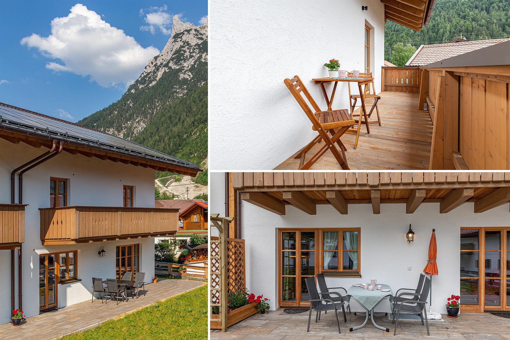 Geniesen Sie unsere liebevoll im bayerisch-alpinen Stil eingerichteten Komfort-Ferienwohnungen. Perfekt für erholsame und unbeschwerte Urlaubstage. Freuen Sie sich auf ihren möblierten Südbalkon o. Südterrasse o. Liegewiese mit Bergblick zu Karwendel und Wetterstein und lassen Sie sich Ihre Brotzeit oder Kaffee schmecken.
