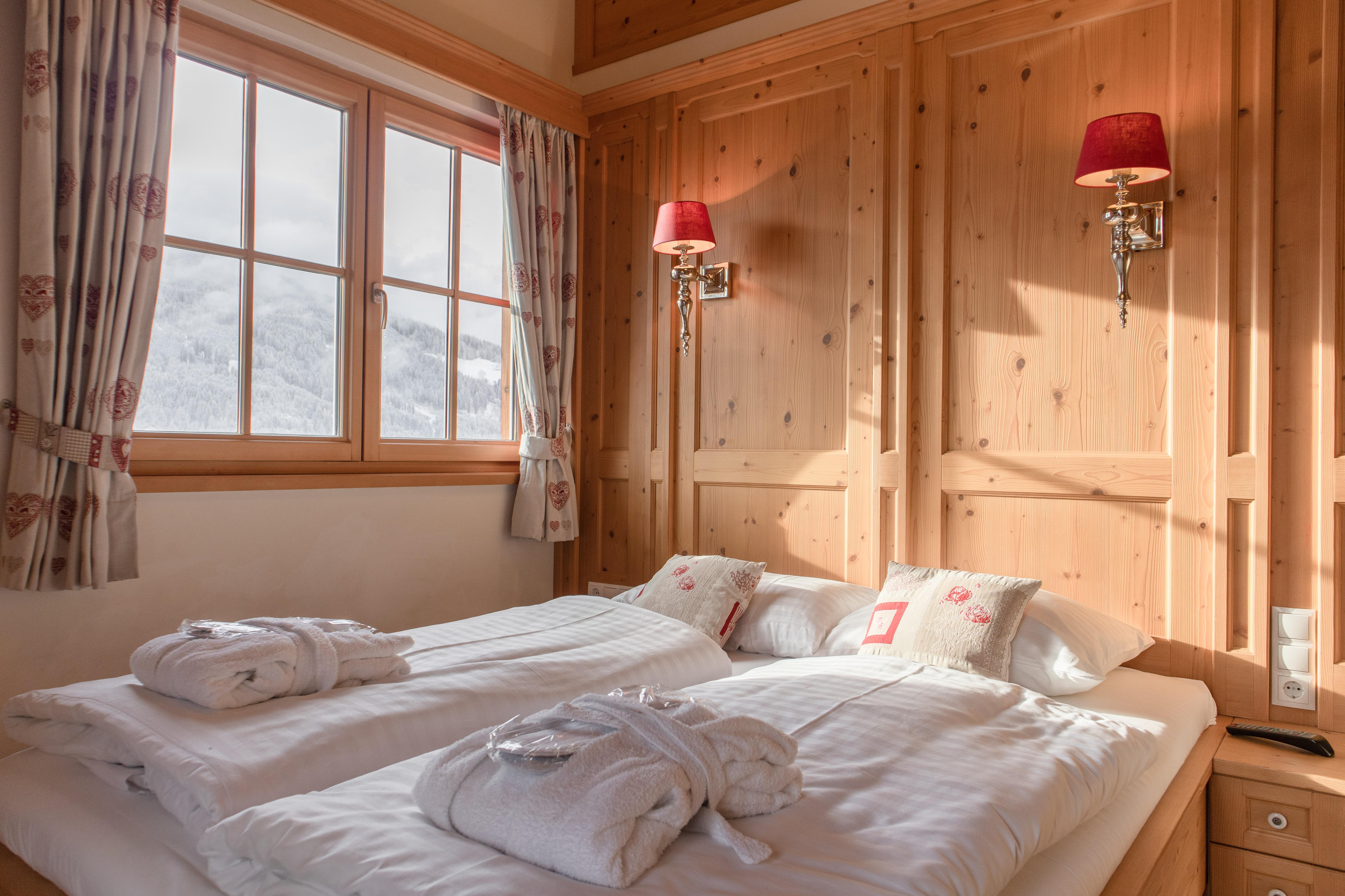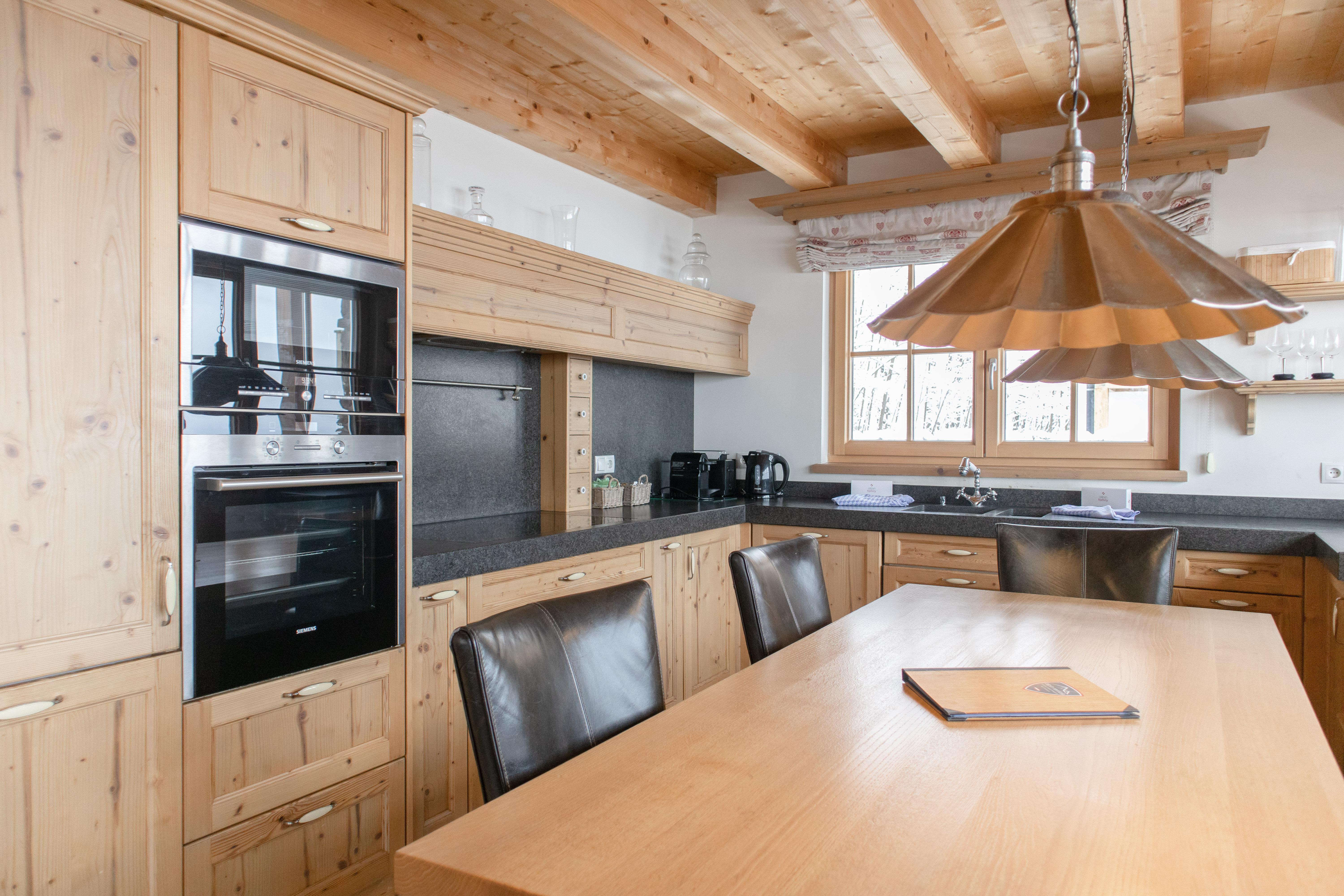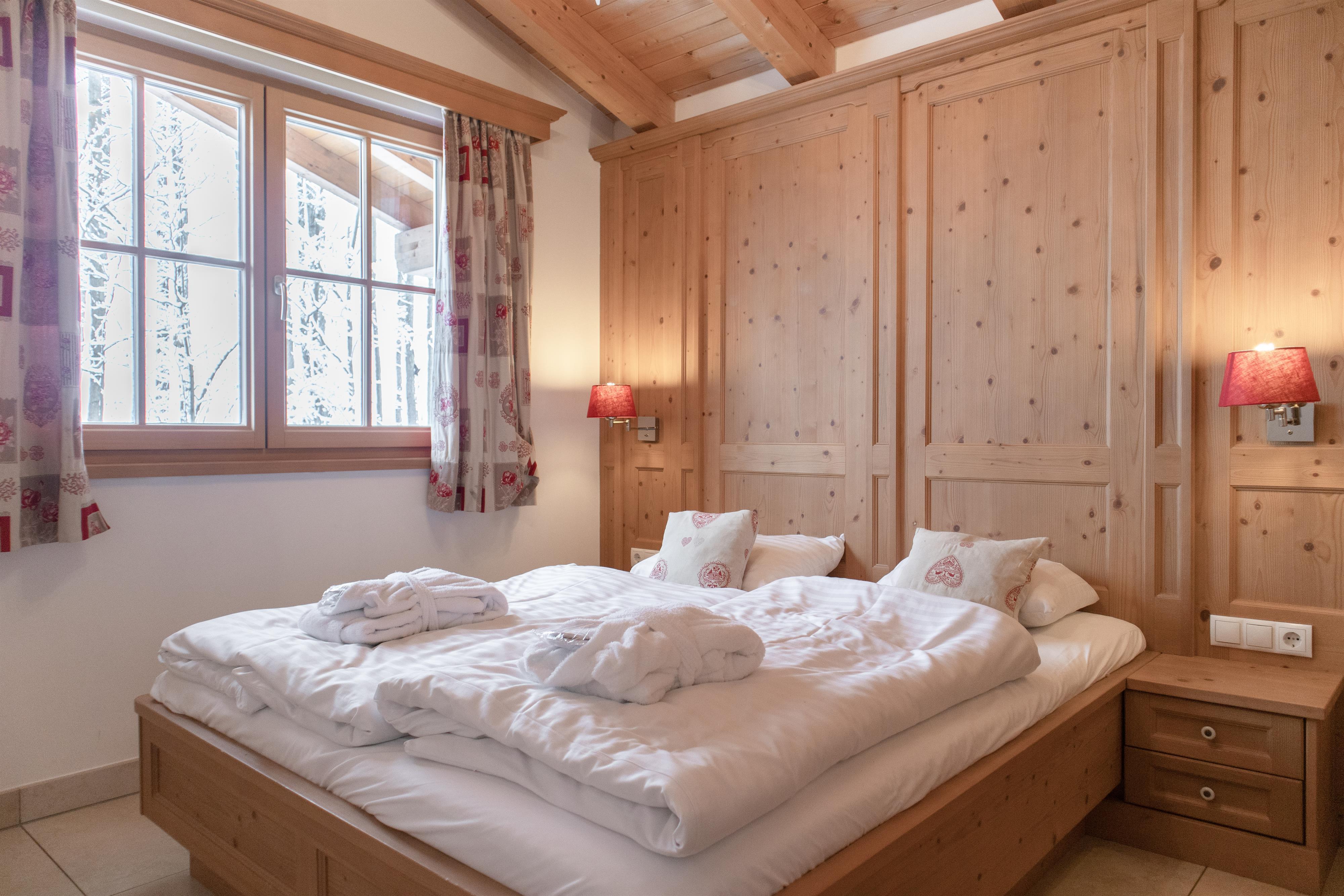 Dieser exklusive Urlaubstraum mit Landhausambiente vereint das typische österreichische Flair mit modernem Komfort. Die Wohnetage im Erdgeschoss besticht durch eine großzügige Essecke mit einer Holzbank. Im Wohnzimmer warten verschiedene Sitzgelegenheiten und ein behaglicher Kaminofen für gemütliche Stunden. Das Obergeschoss beherbergt vier Schlafzimmer, jedes mit einem Doppelbett. Das Chalet bietet zudem einen äußerst geräumigen Carport, der Platz für bis zu vier Autos bietet.