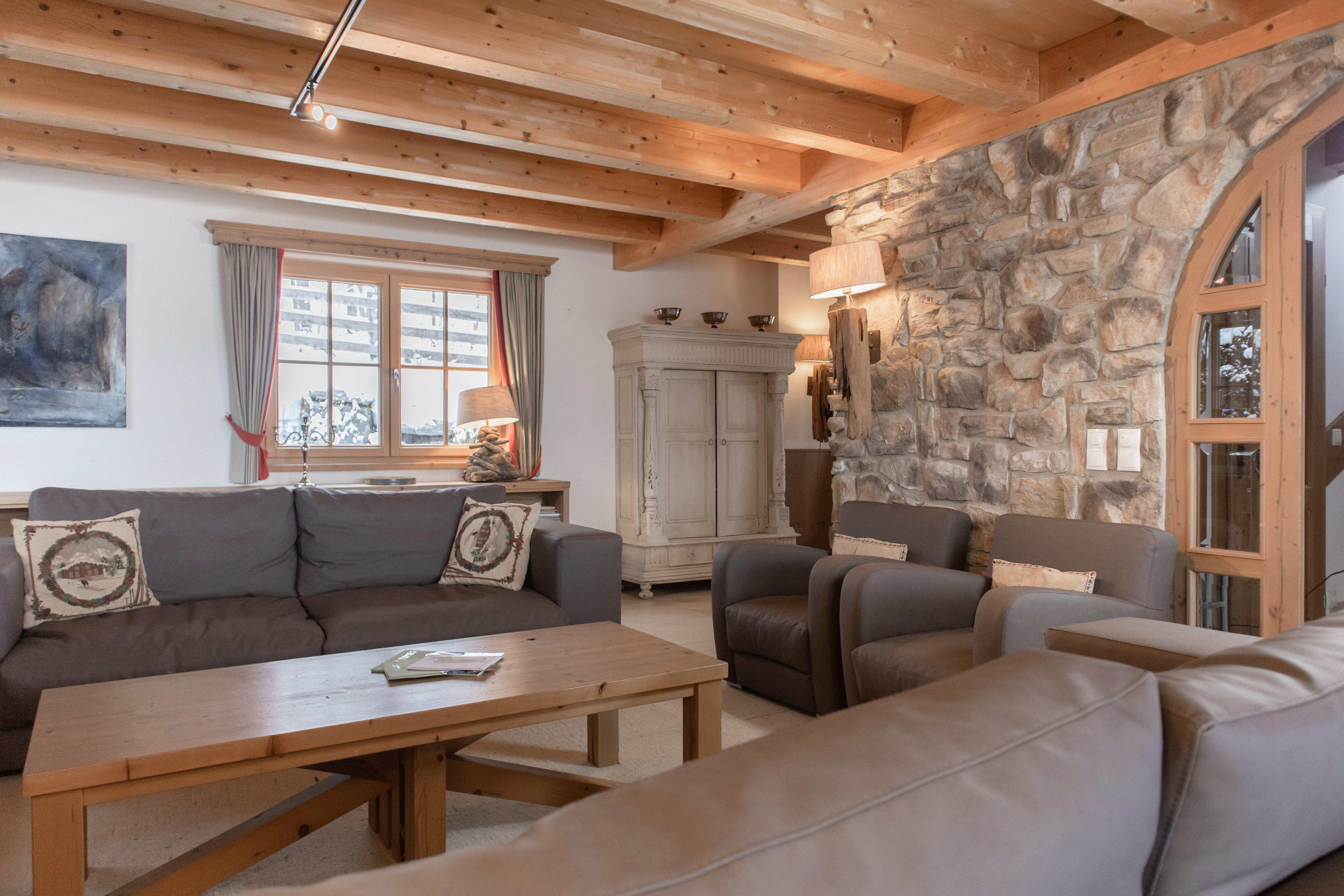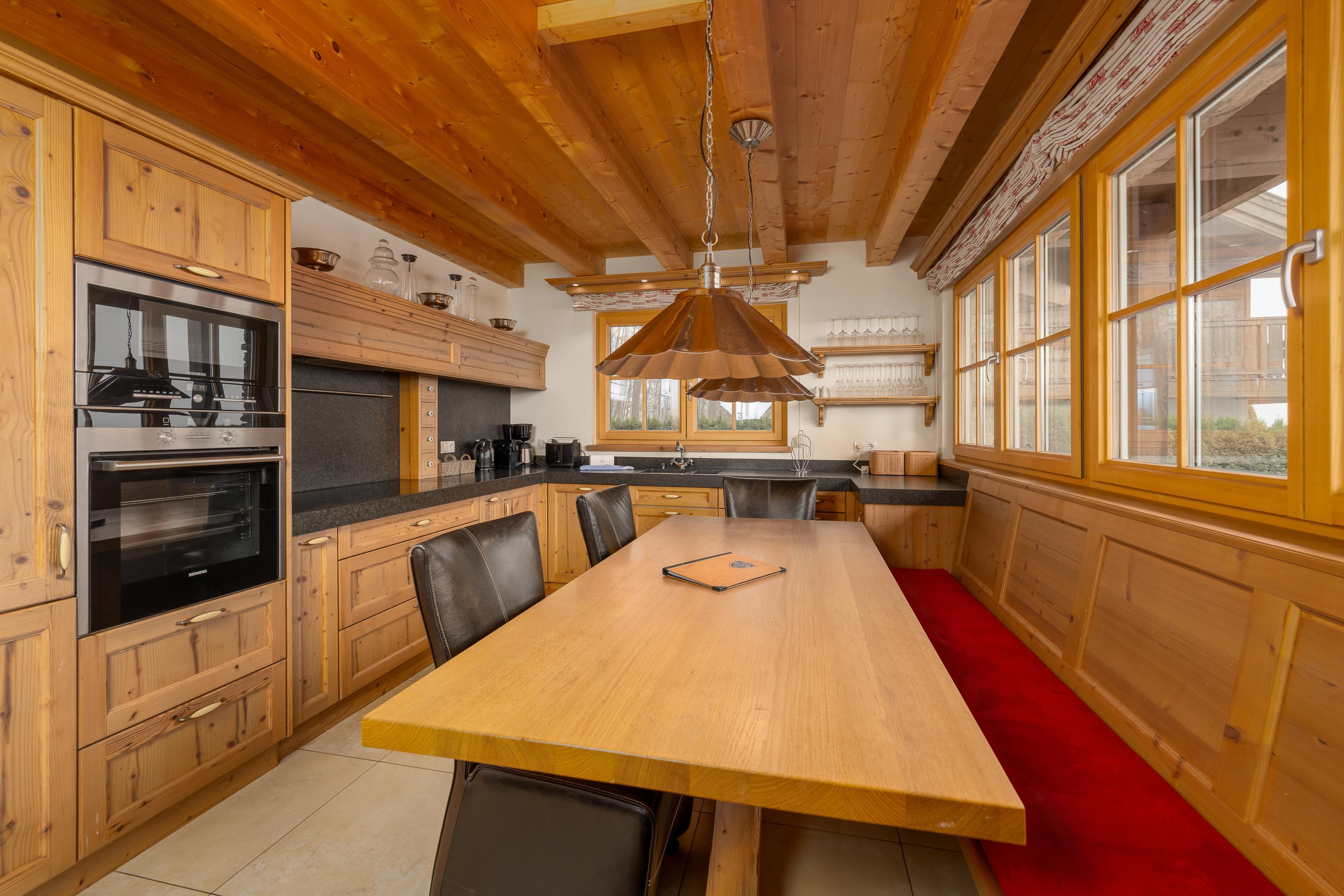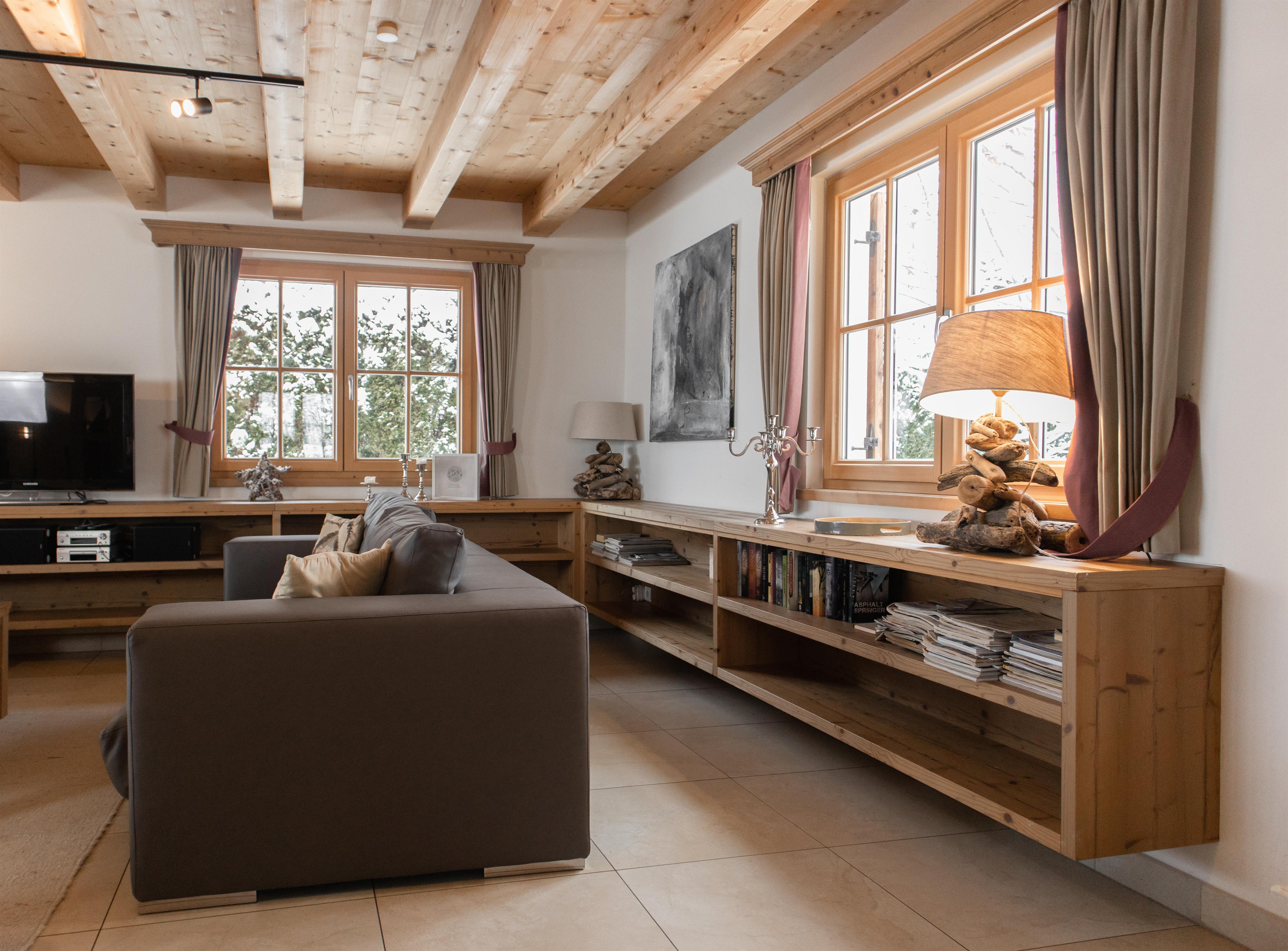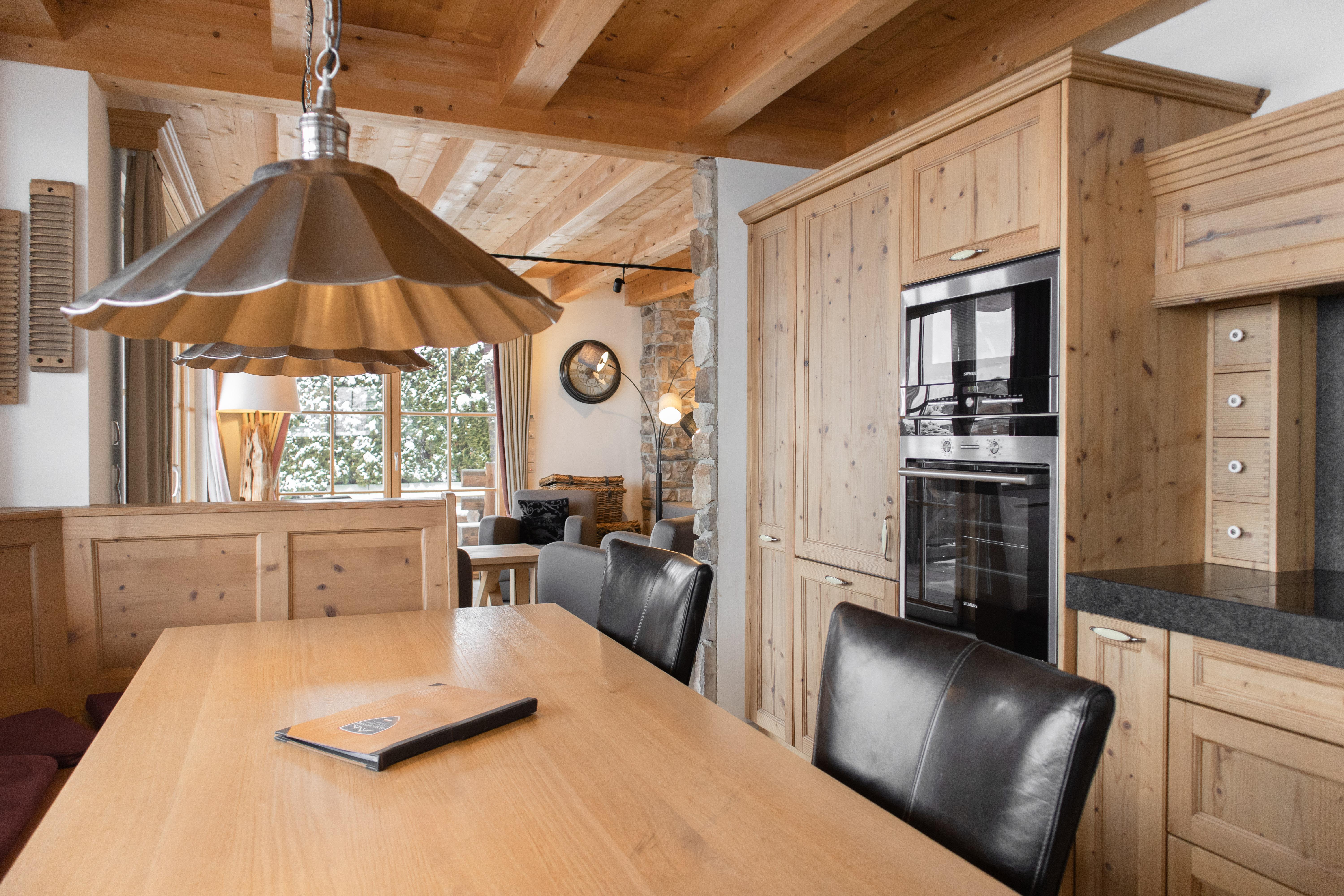Dieser exklusive Urlaubstraum mit Landhausambiente vereint das typische österreichische Flair mit modernem Komfort. Die Wohnetage im Erdgeschoss besticht durch eine großzügige Essecke mit einer Holzbank. Im Wohnzimmer warten verschiedene Sitzgelegenheiten und ein behaglicher Kaminofen für gemütliche Stunden. Das Obergeschoss beherbergt vier Schlafzimmer, jedes mit einem Doppelbett. Das Chalet bietet zudem einen äußerst geräumigen Carport, der Platz für bis zu vier Autos bietet.