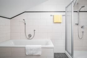 Das helle Doppelzimmer bietet einen unglaublichen Ausblick auf die Kalser Bergwelt und über Kals. So richtig zum Wohlfühlen ist das großzügige Badezimmer. Das Zimmer hat ca. 35m² und kann auch als Familienzimmer gebucht werden