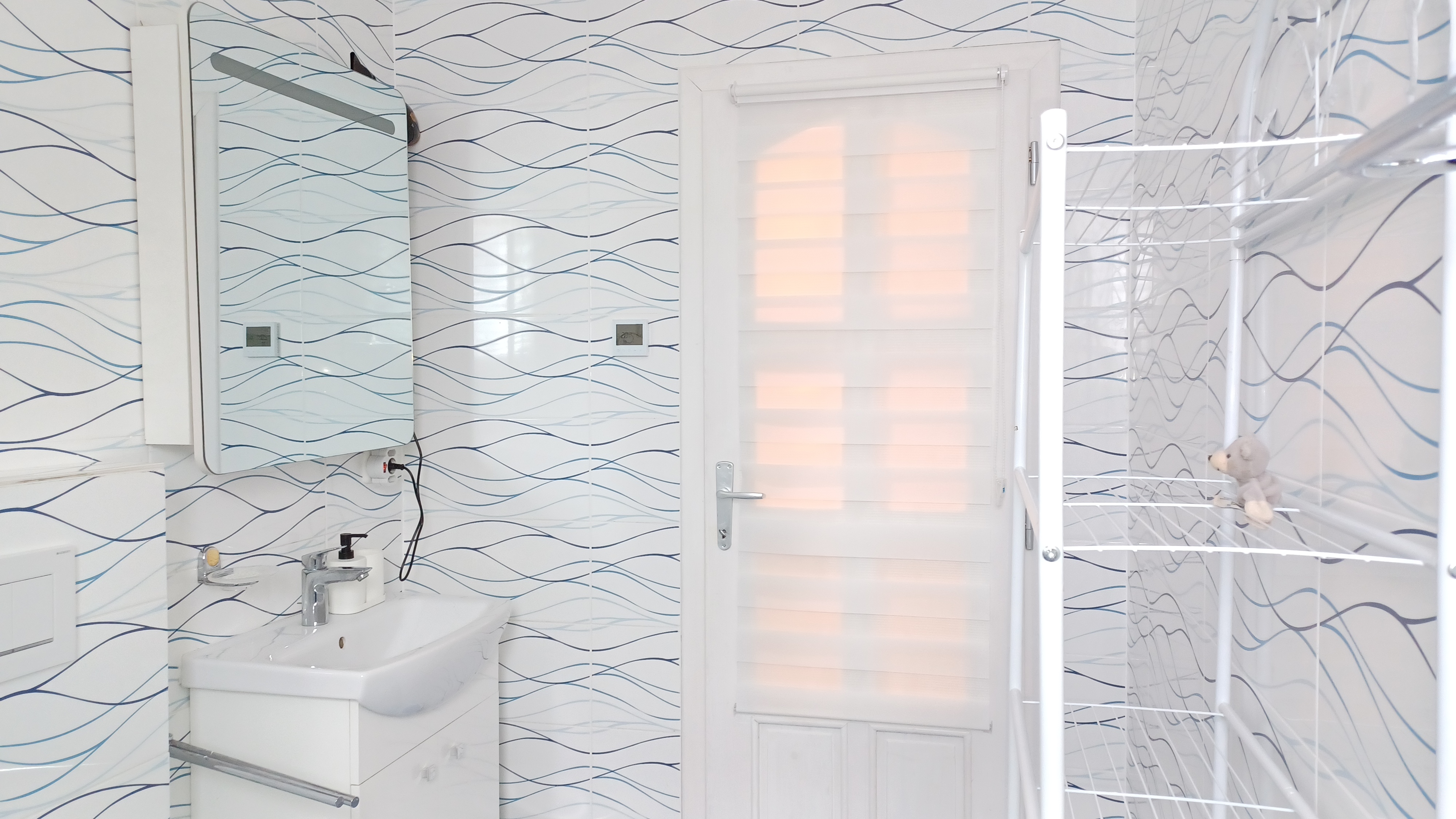 Eine Waschmaschine und ein Trockner stehen in der Diele zur Nutzung bereit. Die Ferienwohnung ist zudem ausgestattet mit zwei Bädern und einem einladenden Balkon mit schöner Aussicht auf die Juralandschaft.