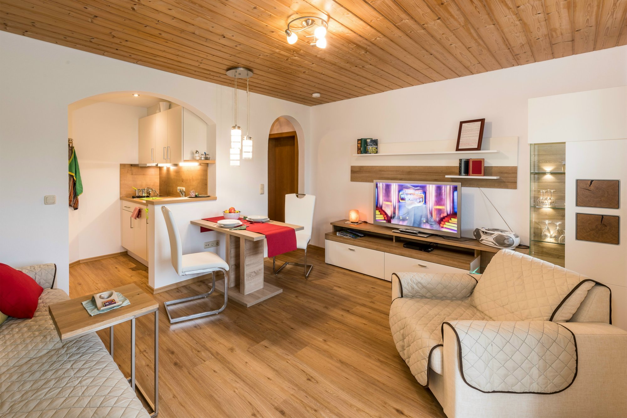 Helle, sonnige 41 m² FeWo, Ost/Südbalkon mit Panoramablick möbliert, Aschenbecher, Wohnung ist/bleibt rauchfrei, Wohnschlafzimmer (Sofa ausklappbar) mit Essbereich, Sat-TV, DVD, CD-Player, WLAN, Kinderreisebett/Hochstuhl im Haus, Kleinküche mit Ceranfeld, ohne Backofen, Mikrowelle, Wasserkocher, Toaster, Kaffeemaschine, Spülmaschine, Hand- Badetücher, Geschirrtcher, Erstausstattung Bettwäsche. 1 Schlafzimmer mit Doppelbett (180x200cm), Ausziehelement, WC, Dusche (4 m²), Fön, Kosmetikspiegel, Flur mit Garderobe, Spiegel, alles liebebvoll für sie eingerichtet. Parkplatz, Liegewiese und Poltzplatz am Haus. Wöchentlicher Handtuchwechsel.