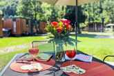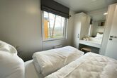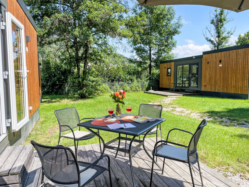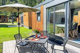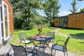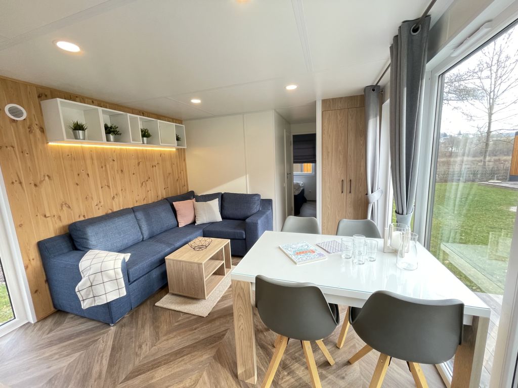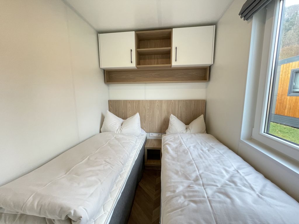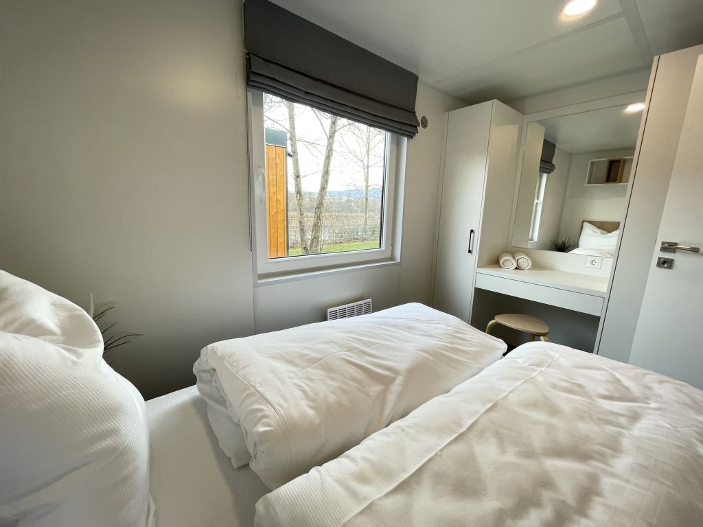 Tiny Haus Xandra, 3-Zimmer-Mobilheim 32 m2. Gemütlich eingerichtet: Wohn-/Schlafzimmer mit (120 cm, Länge 170 cm), Sat-TV. Ausgang zur Terrasse. 1 Zimmer mit 1 franz. Bett (140 cm, Länge 200 cm). 1 Zimmer mit 2 Betten (80 cm, Länge 200 cm). Offene Küche (4 Glaskeramikplatten, Wasserkocher, elektrische Kaffeemaschine). Dusche/WC. E-Heizung. Kleine Terrasse. Terrassenmöbel. Parkplatz beim Haus. Bitte beachten: Nichtraucher-Haus. Maximal 1 Haustier/Hund erlaubt. Fahrradbox. DE8422.200.24