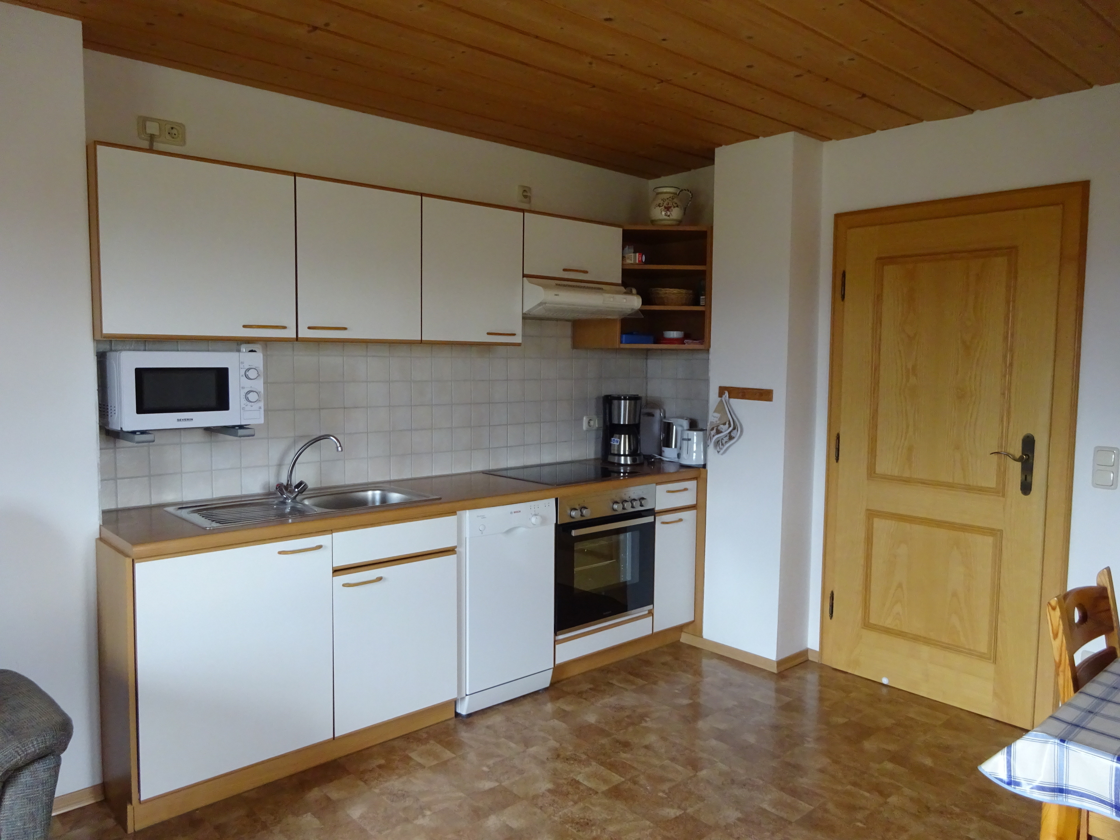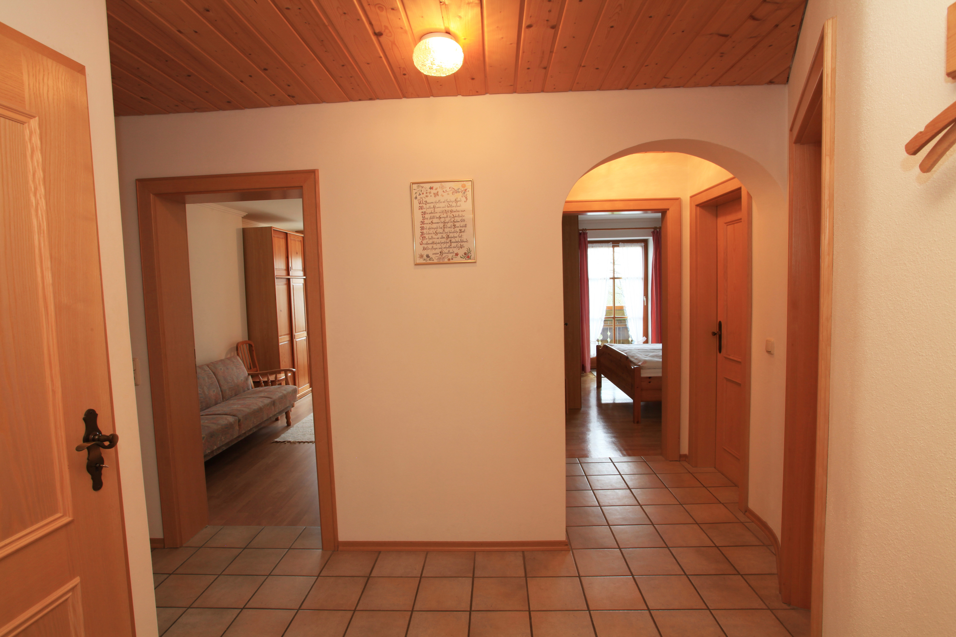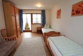 Ferienwohnung für 2 - 5 Personen, ca. 70 qm, 1. Stock, im Nebenhaus eines Bauernhofes mit Pensionspferdehaltung. Die Wohnung besteht aus einer Wohnküche, Sat-TV, Radio, Südbalkon. 1 Doppelzimmer, 1 Dreibettzimmer. Bad/Dusche/WC.