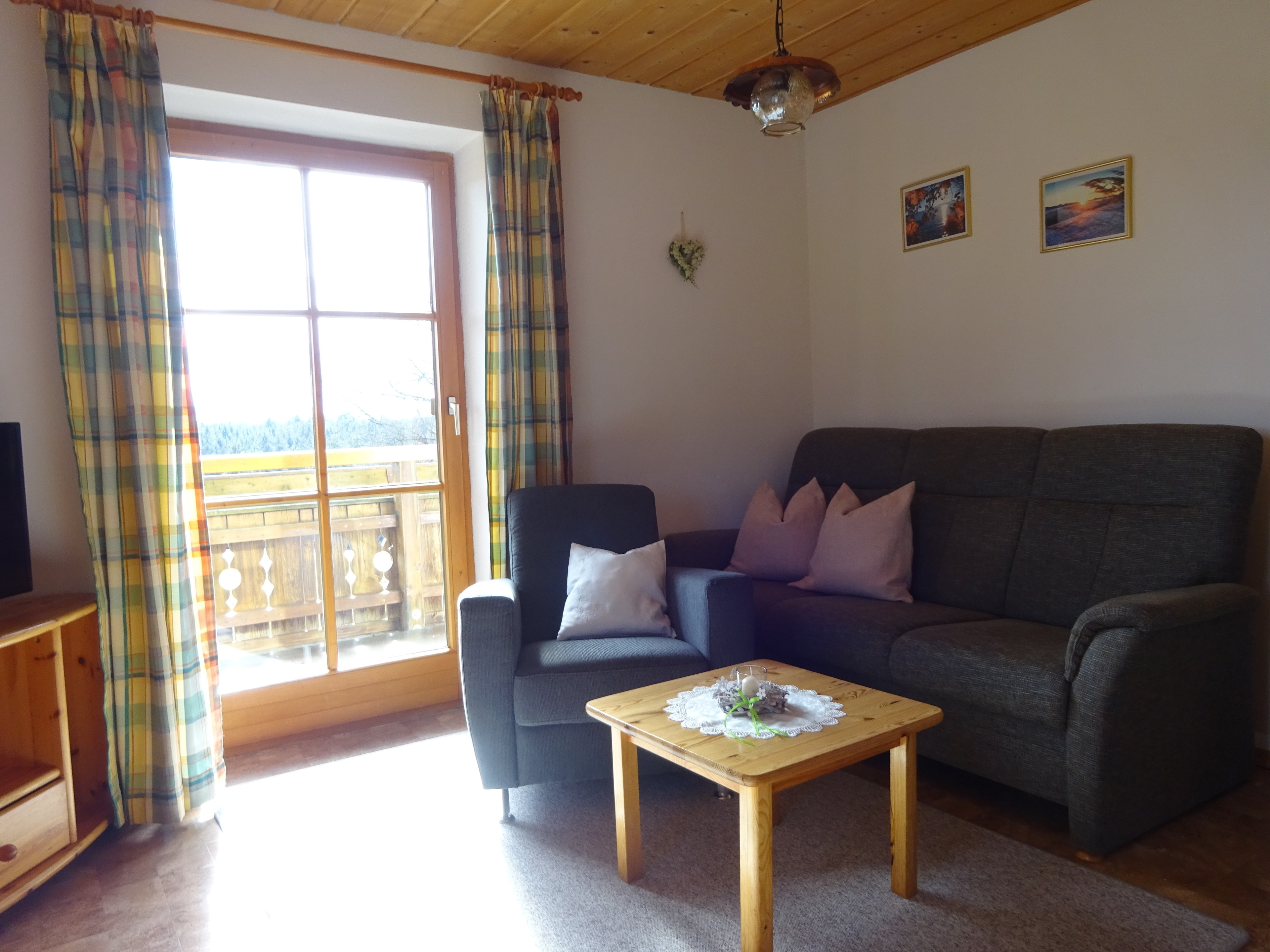 Ferienwohnung für 2 - 5 Personen im Nebenhaus eines Bauernhofes (Pensionspferdehaltung), 6 km vom Ortszentrum entfernt. Sehr ruhige, sonnige Lage mit herrlichem Bergblick. Optimale Umgebung zum Wandern, Schwimmen, Radfahren und Angeln.