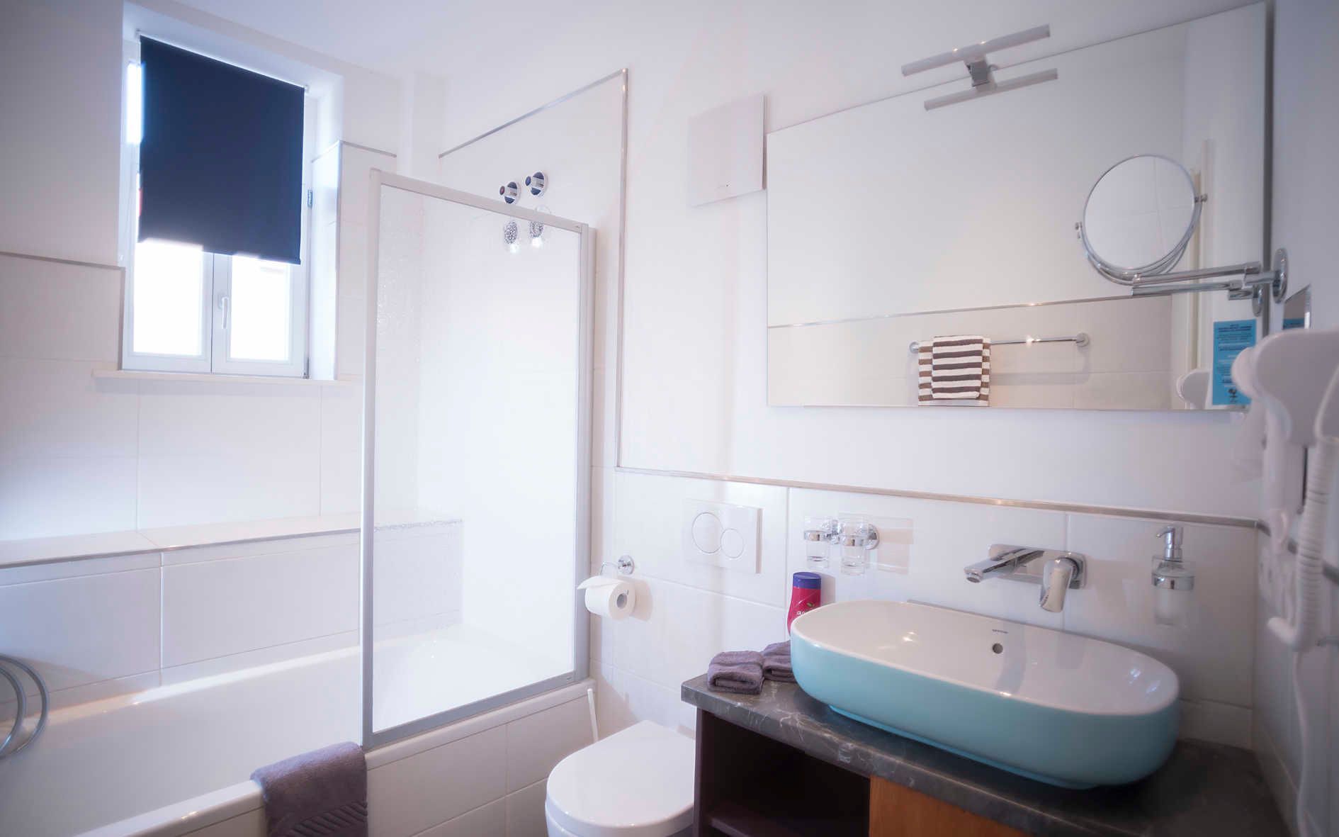Unsere Deluxe-APARTments bieten Alles für den längeren Aufenthalt in komfortabler, ruhiger Lage und bester Ausstattung mit praktischer Küche für die Selbstversorgung, Dusche/WC mit Haartrockner, Sitzgelegenheit, einem hochbequemen Boxspringbett bis zu W-Lan und Flachbildschirm-TV.
