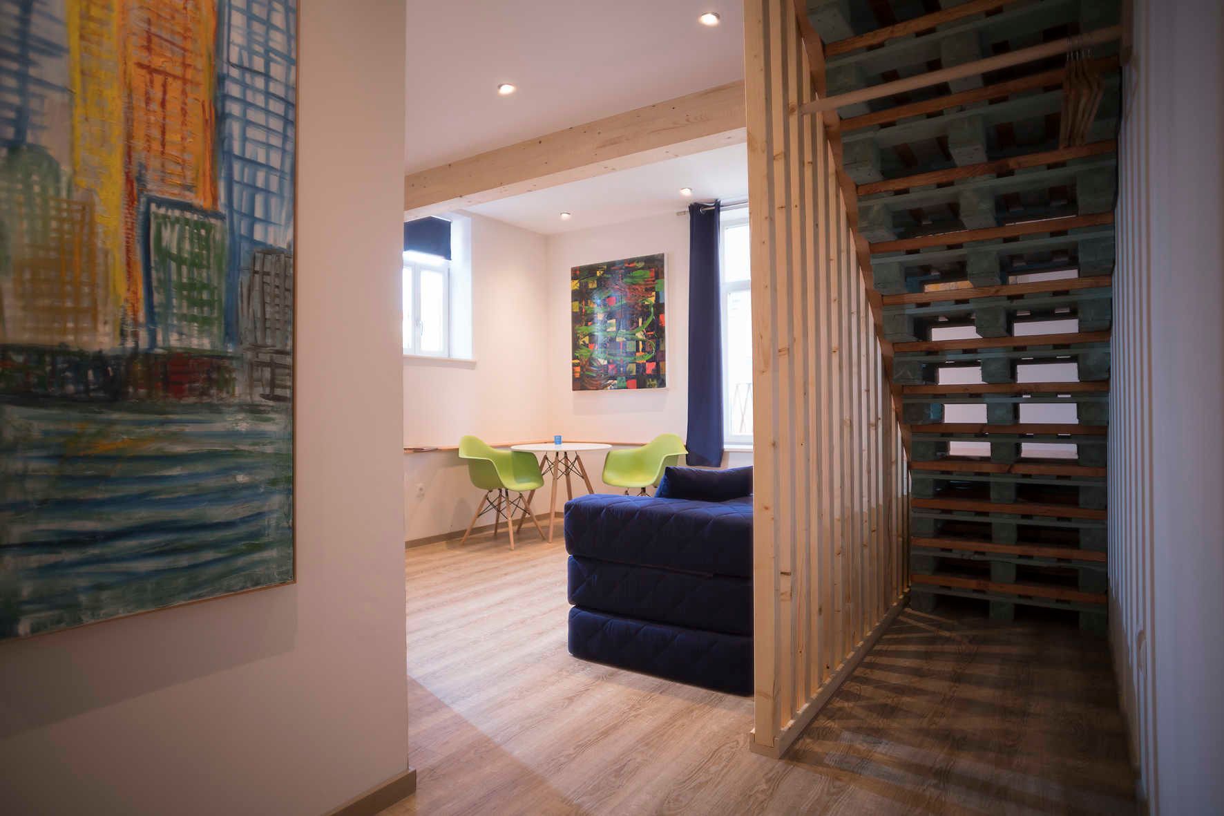 Wohnen wie Zuhause – auf Zeit. Das Anno Domini 1716 selbst besteht aus 2 Gebäudeensembles – der Hofstallung, einer über 300 Jahren alten Fachwerk-Scheune und dem Herrenhaus mit markanter Fachwerkgestaltung. Beide wurden Anfang 2018 von uns erworben und in aufwändiger Bauweise auf den modernsten Stand gebracht. Das Anwesen wurde komplett entkernt, die Fachwerke instandbesetzt und unter Verwendung ausschließlich baubiologisch ausgesuchter und naturbelassener Werkstoffe insgesamt 10 perfekt zugeschnittene, klimatechnische Wohlfühl-Einheiten hergerichtet. Die Außenfassade wurde erhalten, einschließlich der Holz-Lehm-Gefache und des dahinter liegenden Mauerwerks aus Naturziegeln. Innen wurde mit einem rein natürlichen Dämmputz und ebensolchen Dämmmaterialien für ein perfektes Klima gesorgt, der Ausbau selbst erfolgte mit Kalksandstein und in Holz-Bauweise. Die Apartments selbst sind perfekt für Selbstversorger ausgestattet mit kuscheligem. komfortablen und allergikergeeignetem Doppelbett, geräumiger Dusche/WC, vollständiger Pantryküche, W-Lan und TV/Radio und teils mit großem Balkon. Der Innenhof bietet Unterstell-Möglichkeiten für Fahrräder, Fahrzeuge können in der 3 Minuten entfernten, rund um die Uhr überwachten Tiefgarage abgestellt werden. In der Wagnergasse selbst gibt es ausschließlich Anliegerverkehr, was eine unvergleichlich angenehme Ruhe inmitten der Innenstadt garantiert.